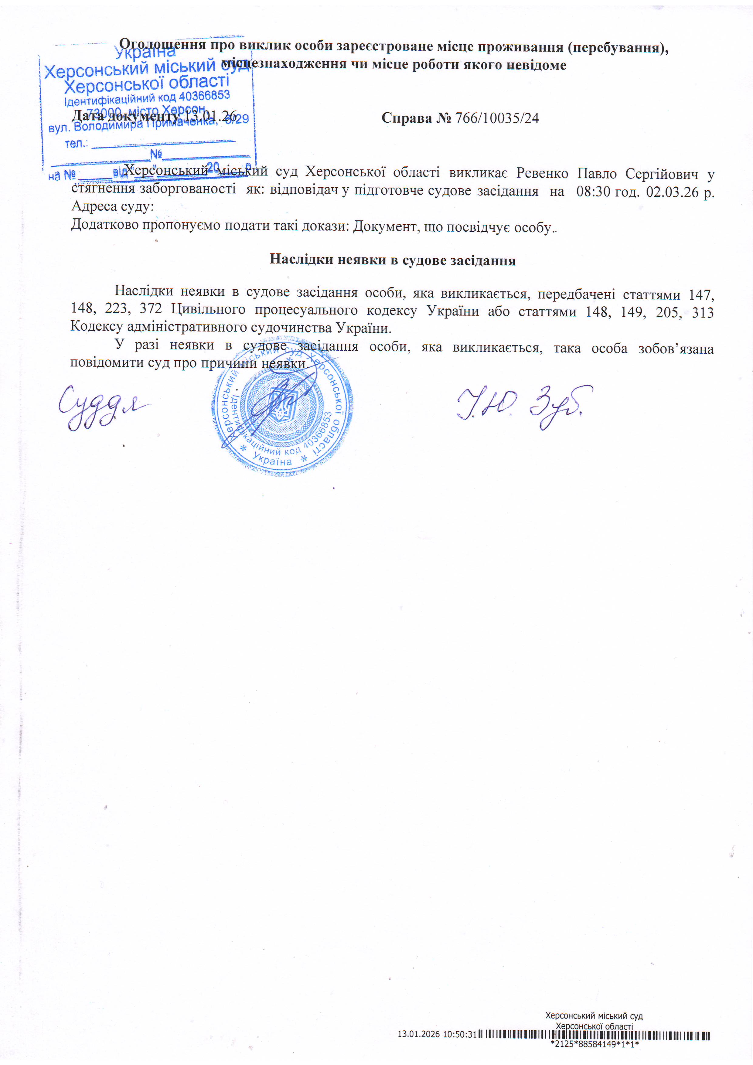 ОГОЛОШЕННЯ ПРО ВИКЛИК ДО СУДУ