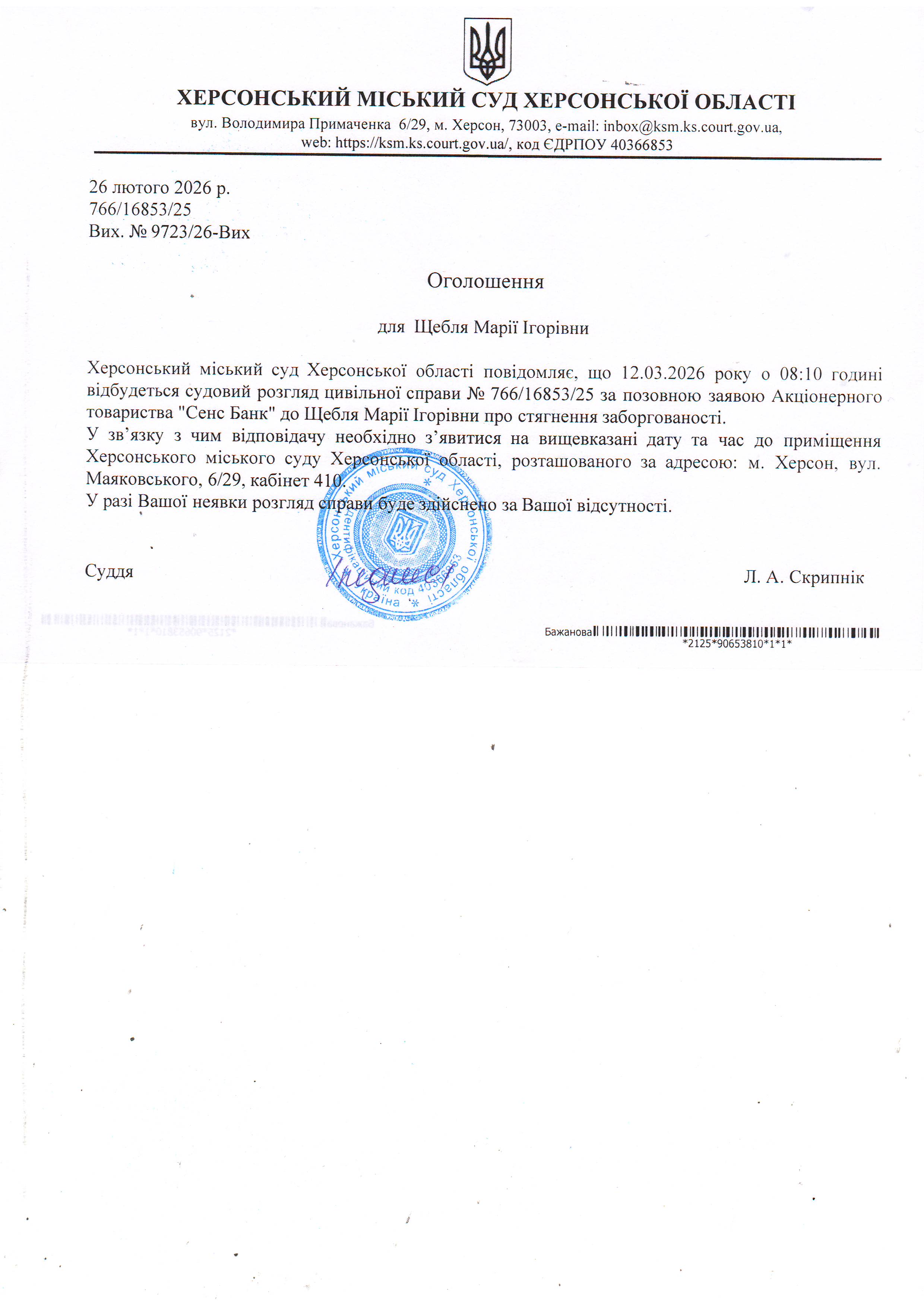 ОГОЛОШЕННЯ ПРО ВИКЛИК ДО СУДУ