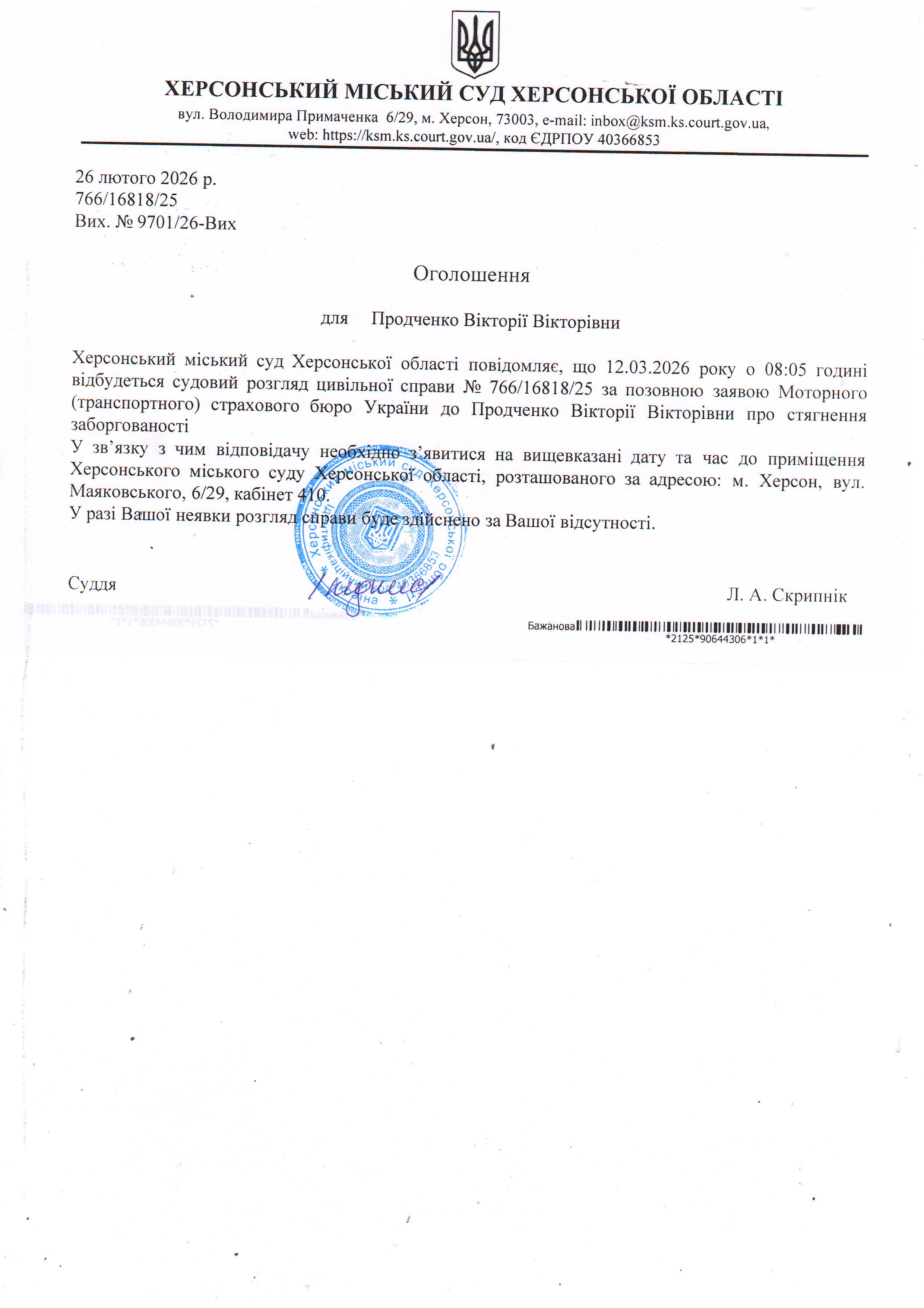 ОГОЛОШЕННЯ ПРО ВИКЛИК ДО СУДУ