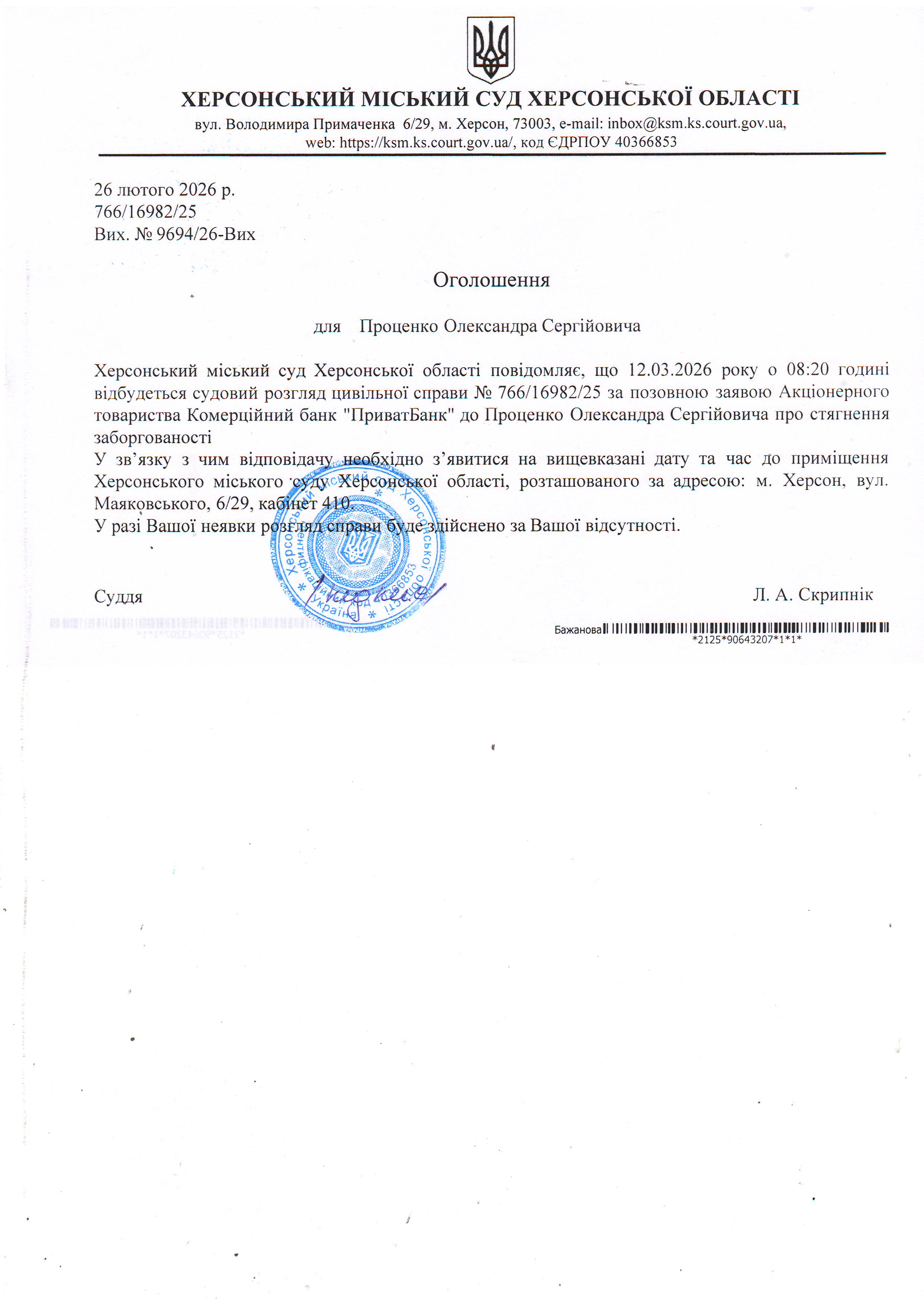 ОГОЛОШЕННЯ ПРО ВИКЛИК ДО СУДУ