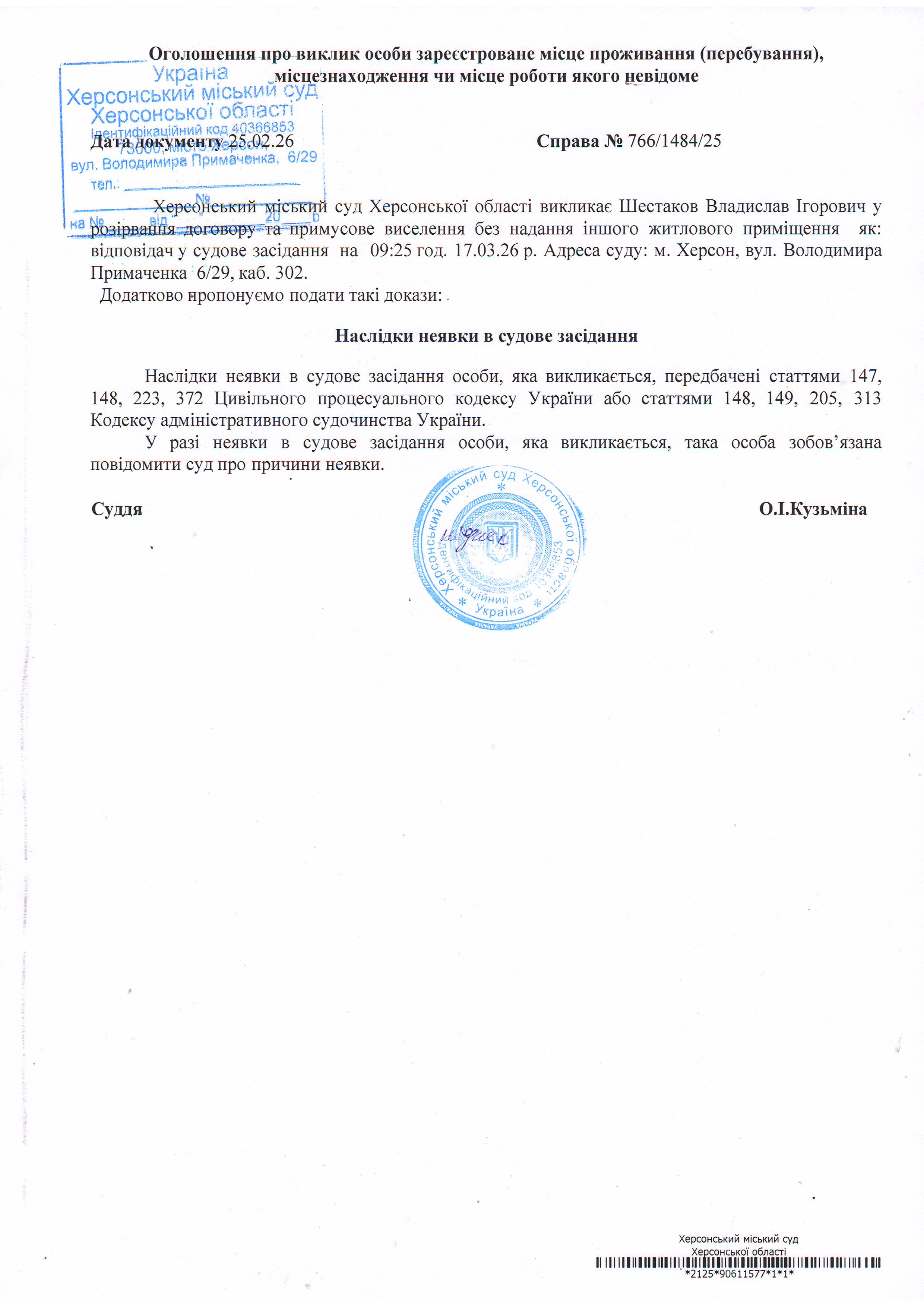 ОГОЛОШЕННЯ ПРО ВИКЛИК ДО СУДУ