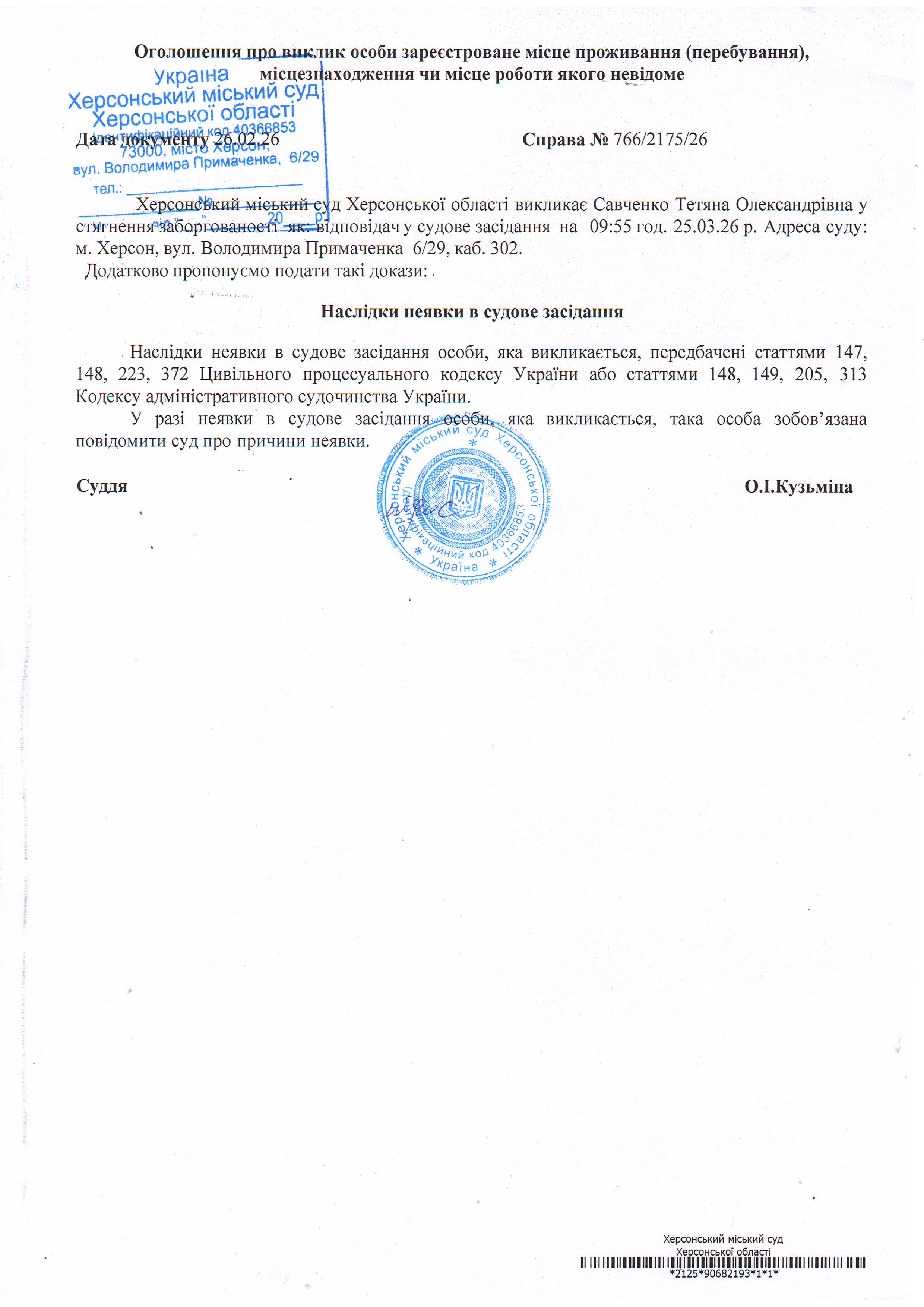 ОГОЛОШЕННЯ ПРО ВИКЛИК ДО СУДУ