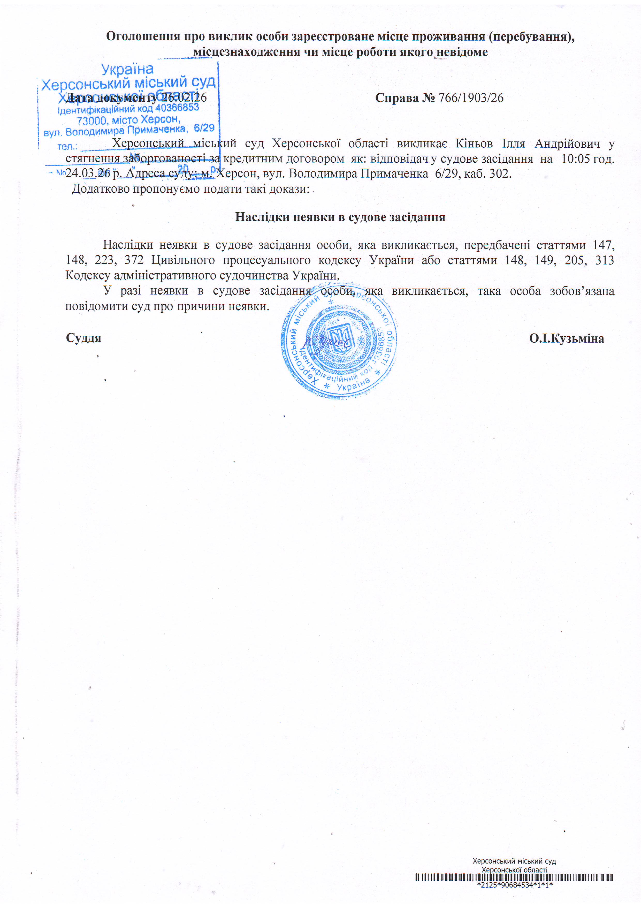 ОГОЛОШЕННЯ ПРО ВИКЛИК ДО СУДУ