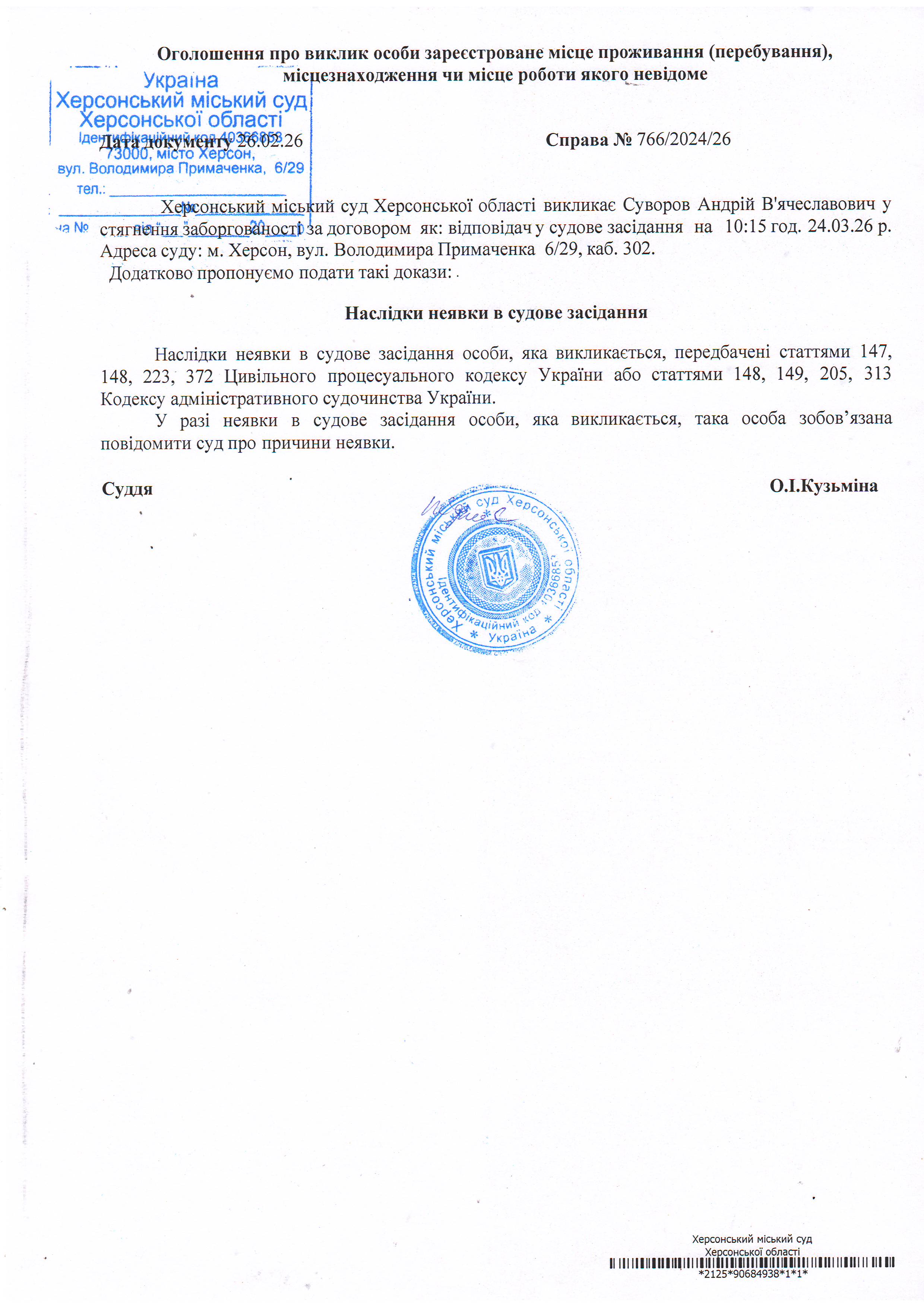 ОГОЛОШЕННЯ ПРО ВИКЛИК ДО СУДУ