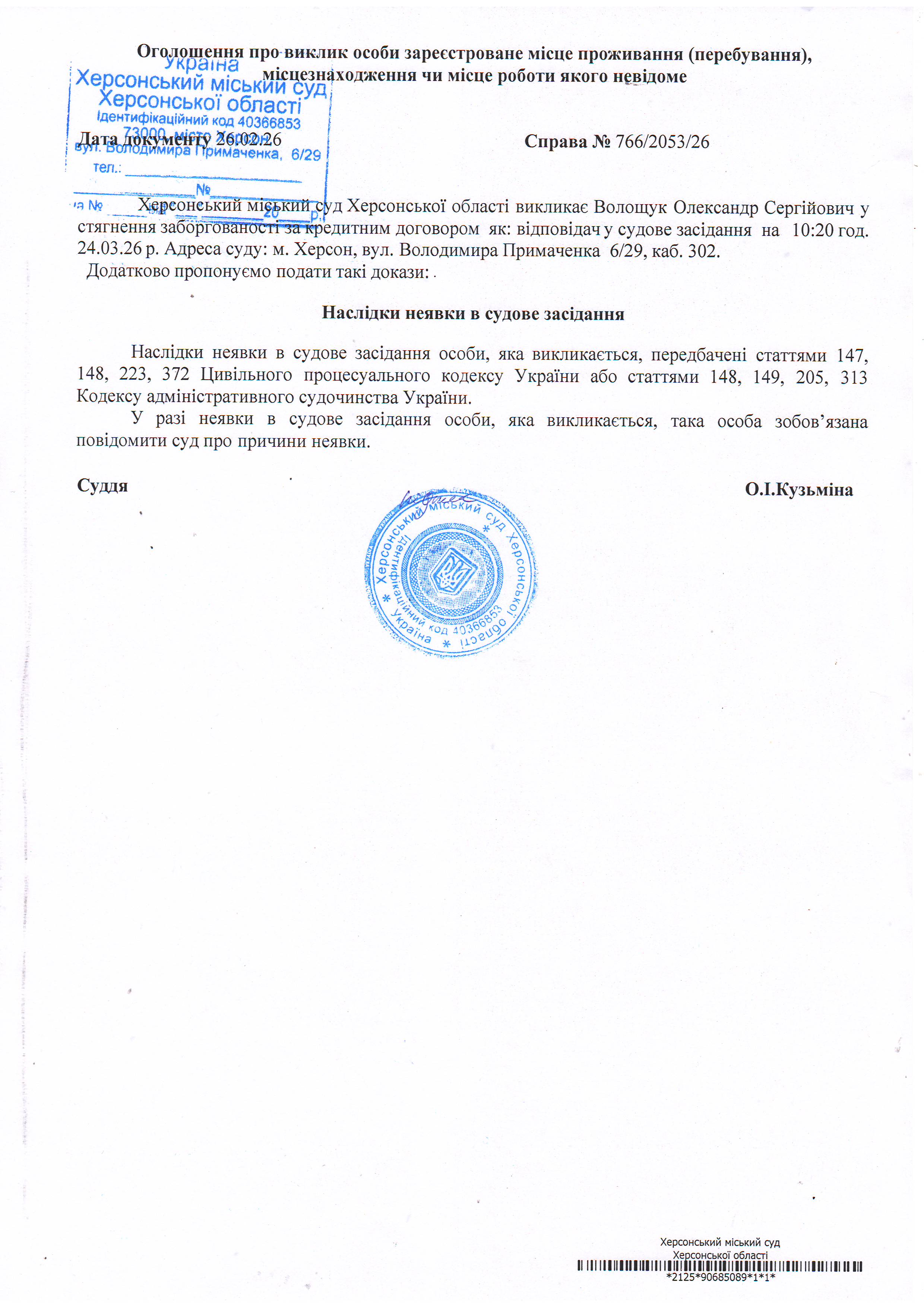 ОГОЛОШЕННЯ ПРО ВИКЛИК ДО СУДУ
