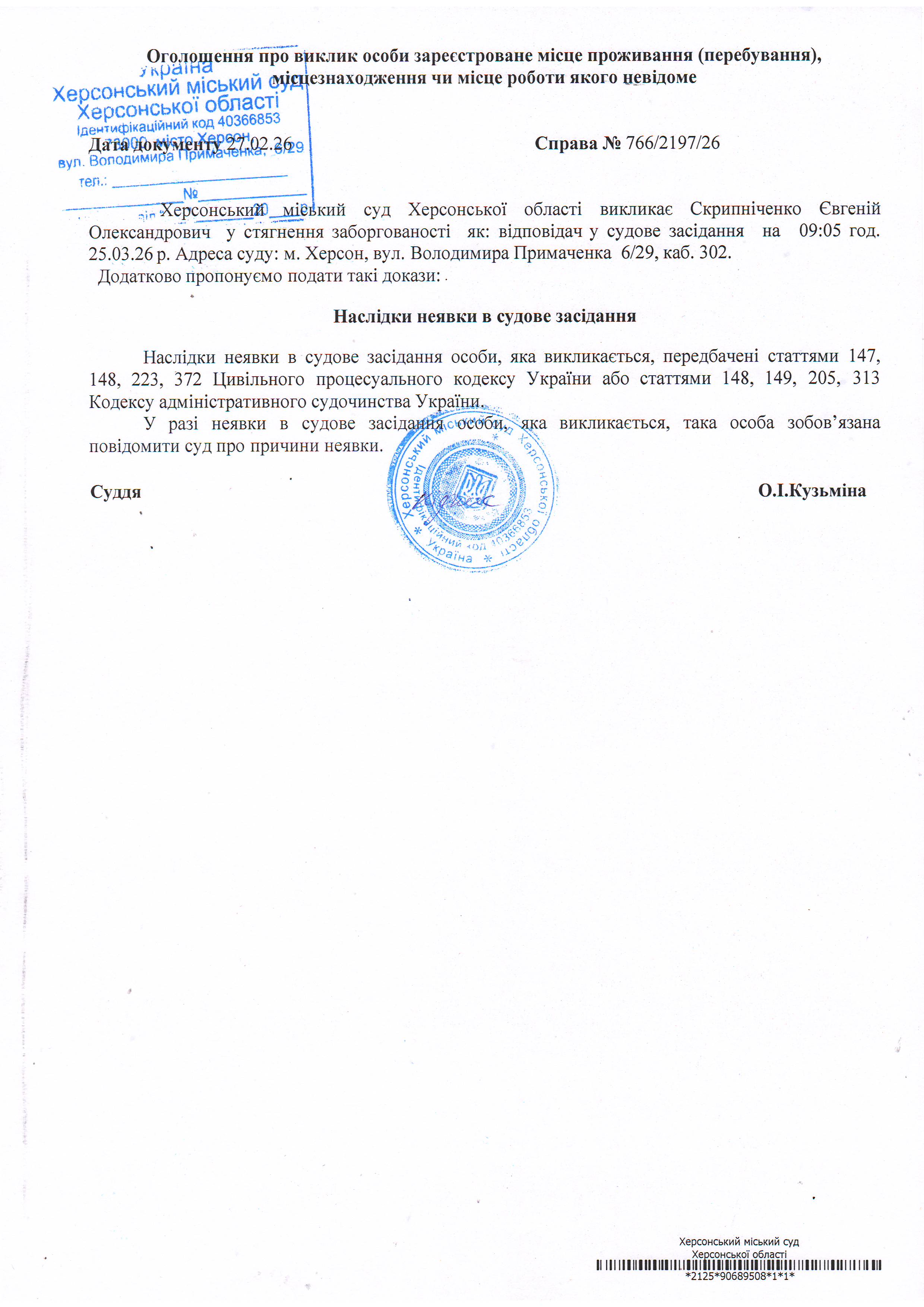 ОГОЛОШЕННЯ ПРО ВИКЛИК ДО СУДУ