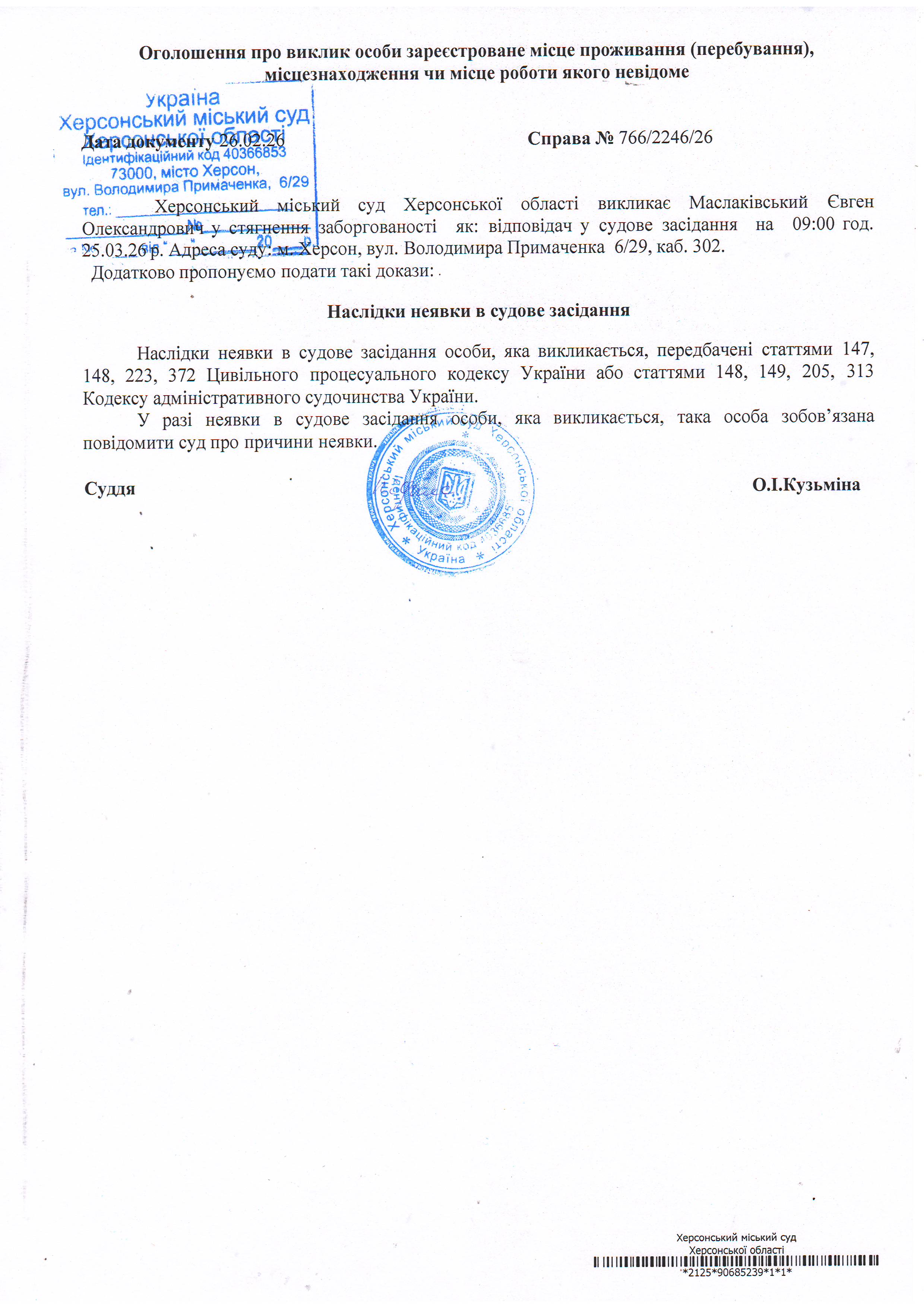 ОГОЛОШЕННЯ ПРО ВИКЛИК ДО СУДУ