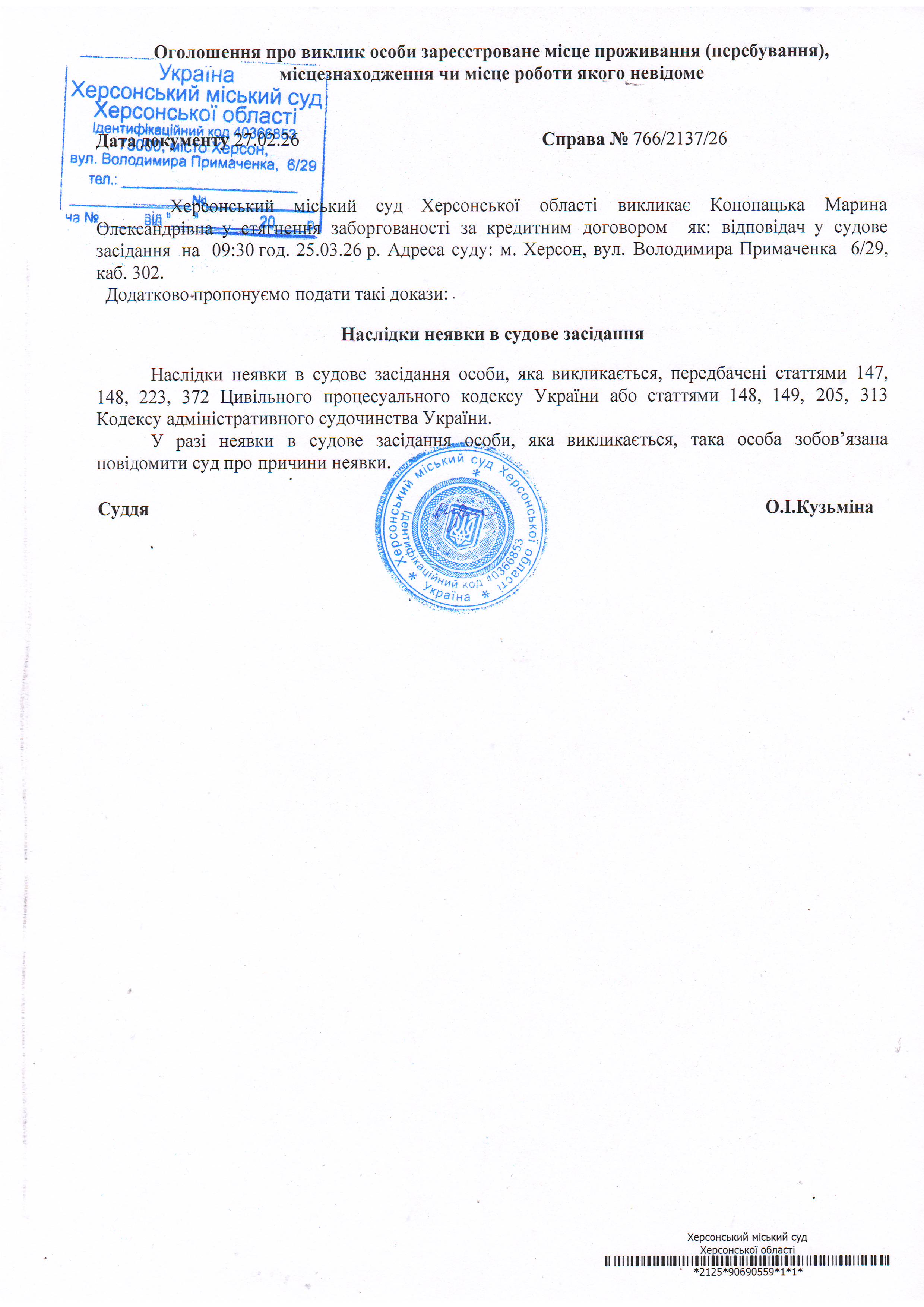 ОГОЛОШЕННЯ ПРО ВИКЛИК ДО СУДУ