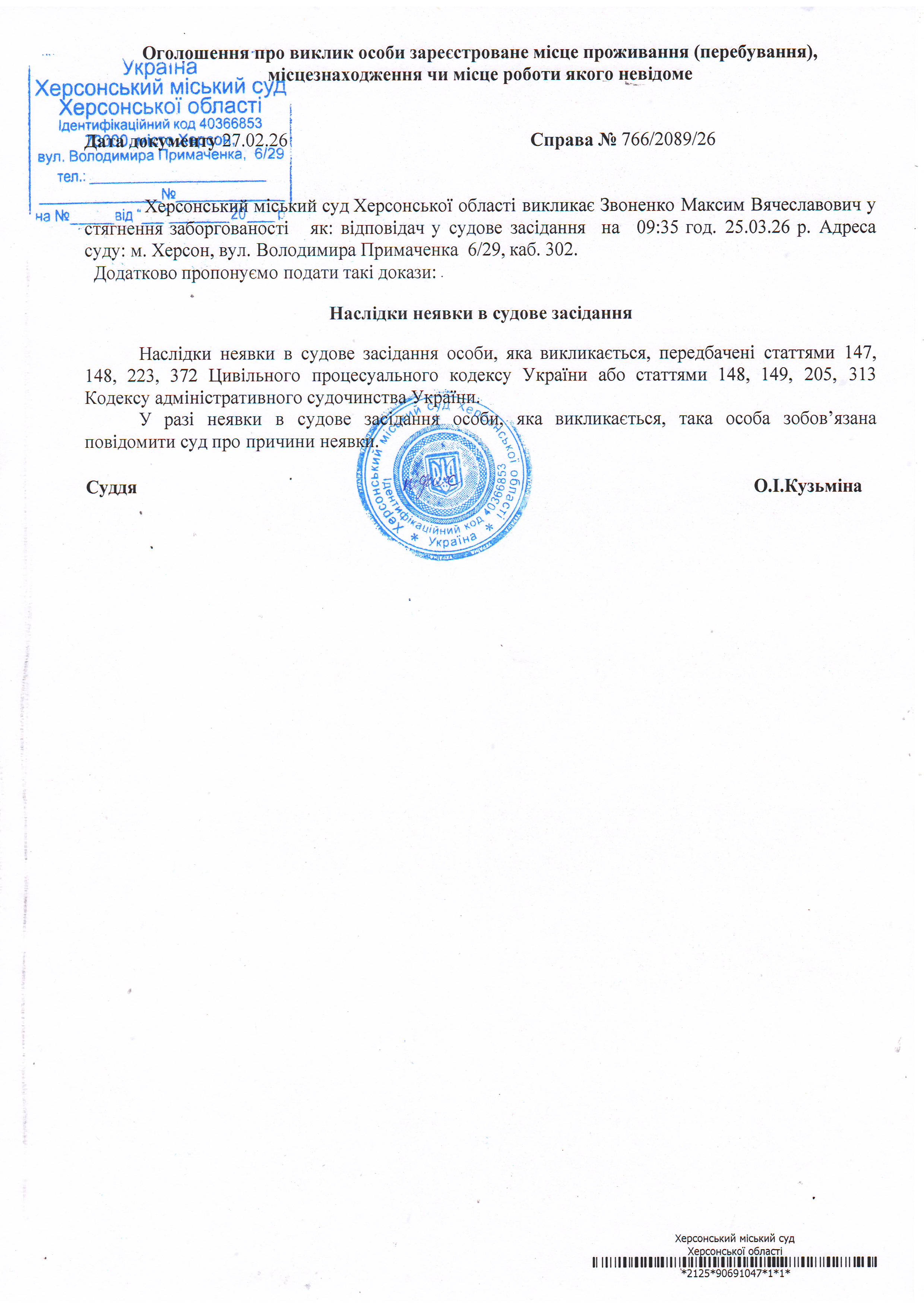 ОГОЛОШЕННЯ ПРО ВИКЛИК ДО СУДУ