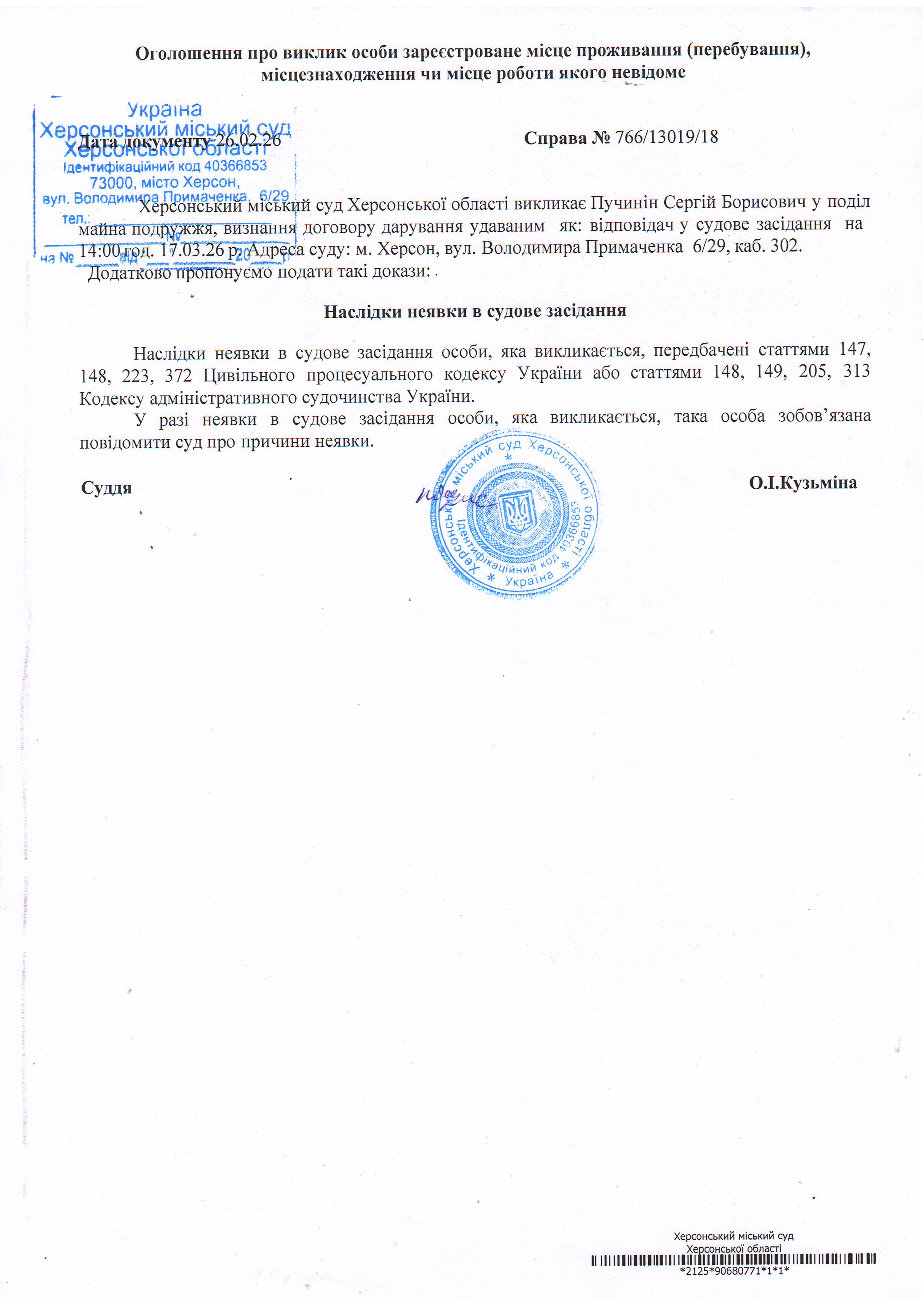 ОГОЛОШЕННЯ ПРО ВИКЛИК ДО СУДУ