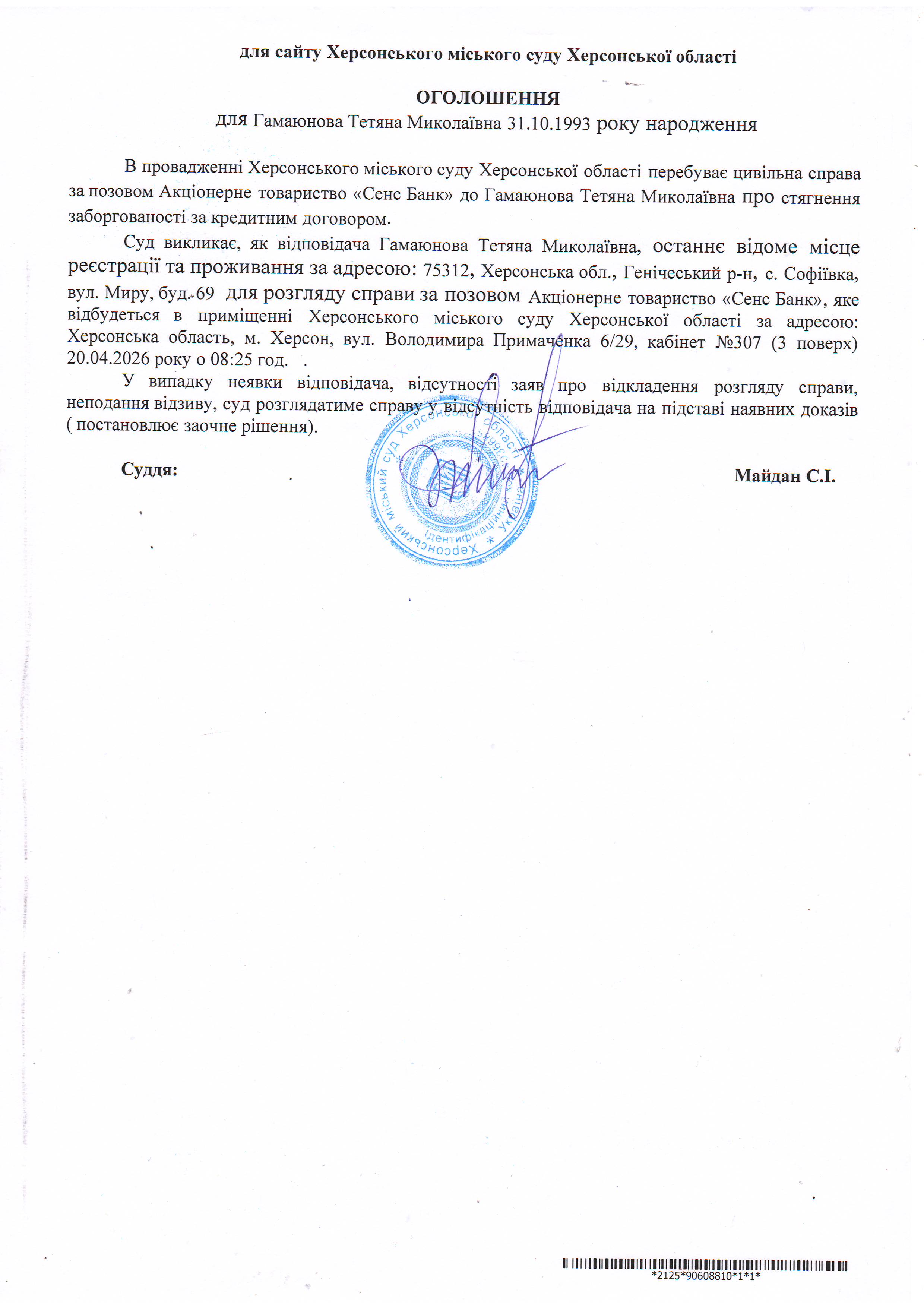 ОГОЛОШЕННЯ ПРО ВИКЛИК ДО СУДУ