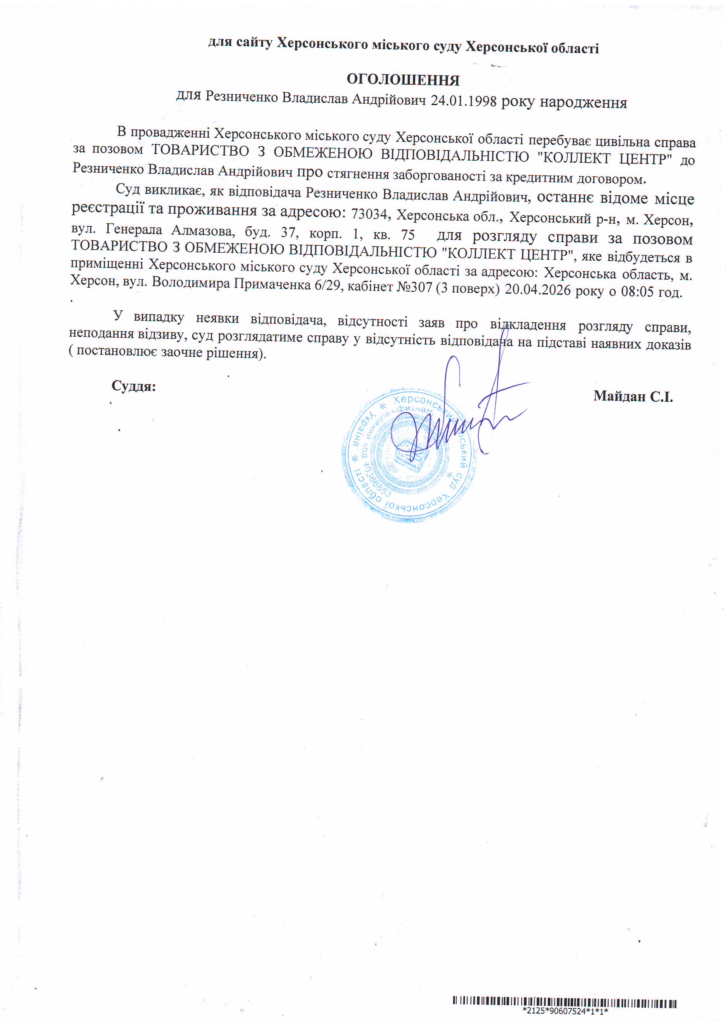 ОГОЛОШЕННЯ ПРО ВИКЛИК ДО СУДУ