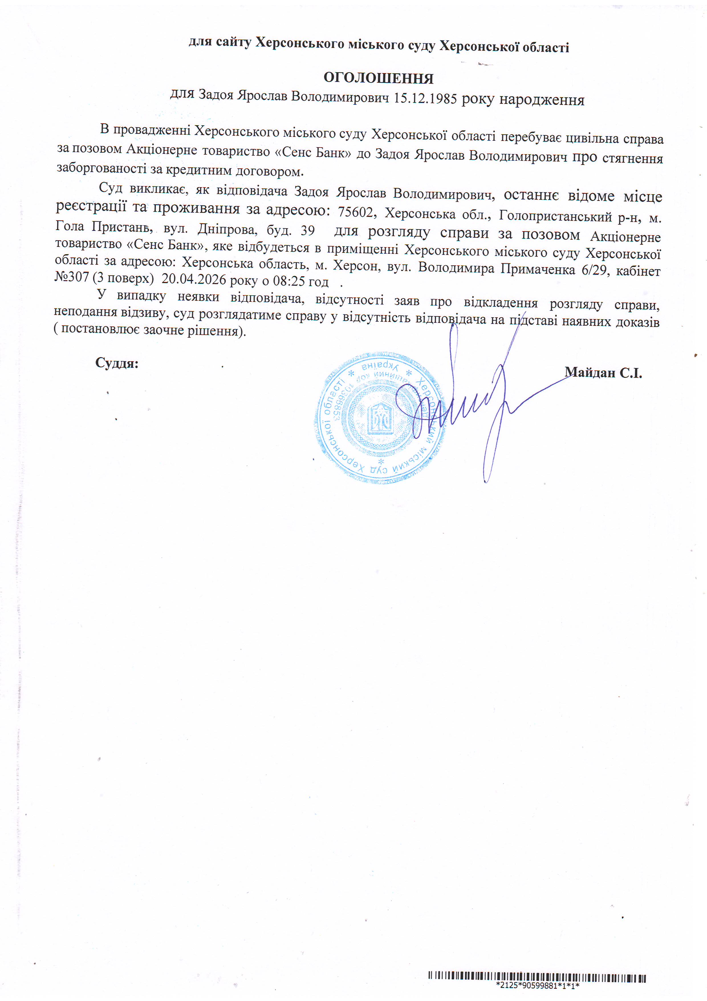 ОГОЛОШЕННЯ ПРО ВИКЛИК ДО СУДУ