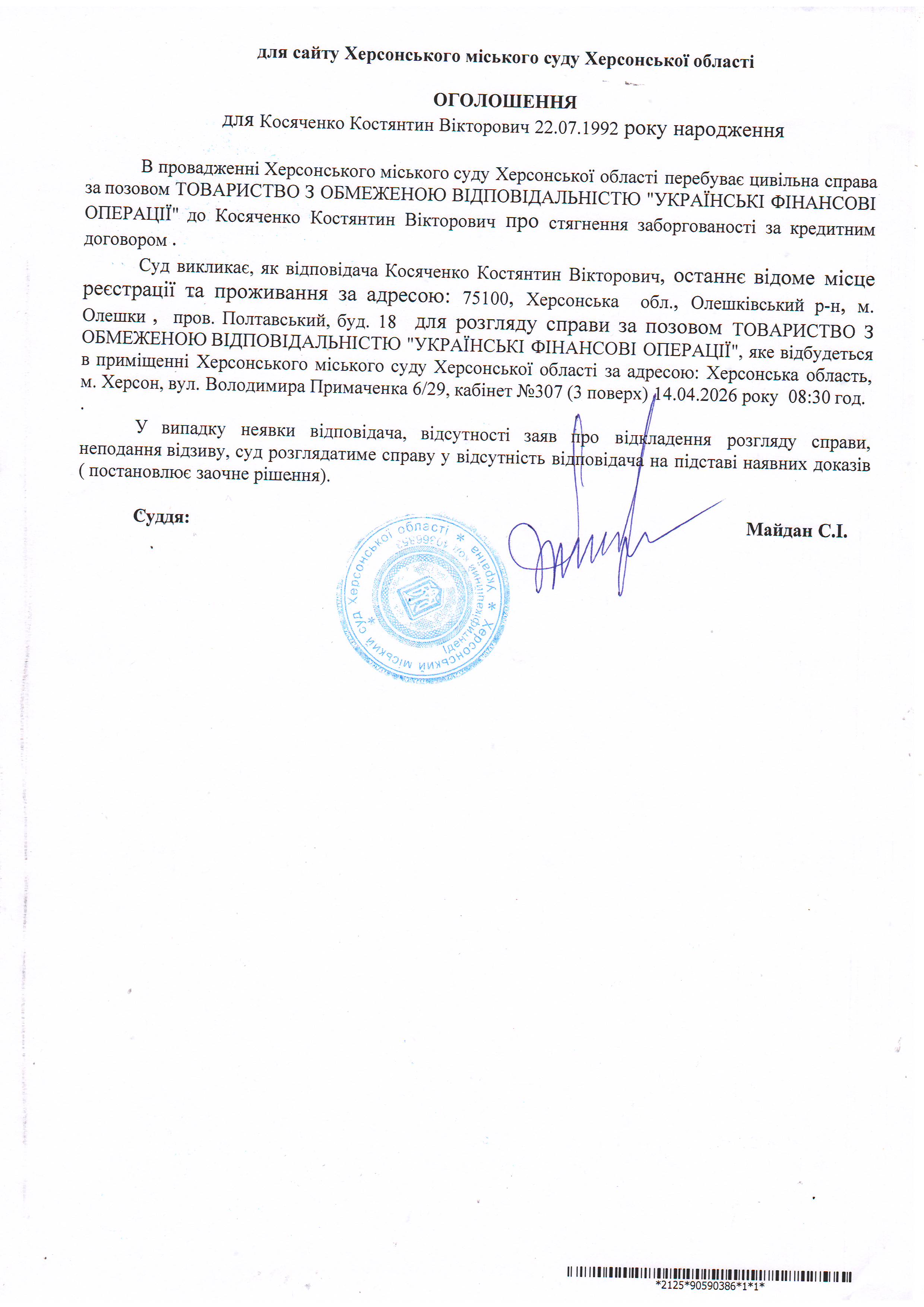 ОГОЛОШЕННЯ ПРО ВИКЛИК ДО СУДУ