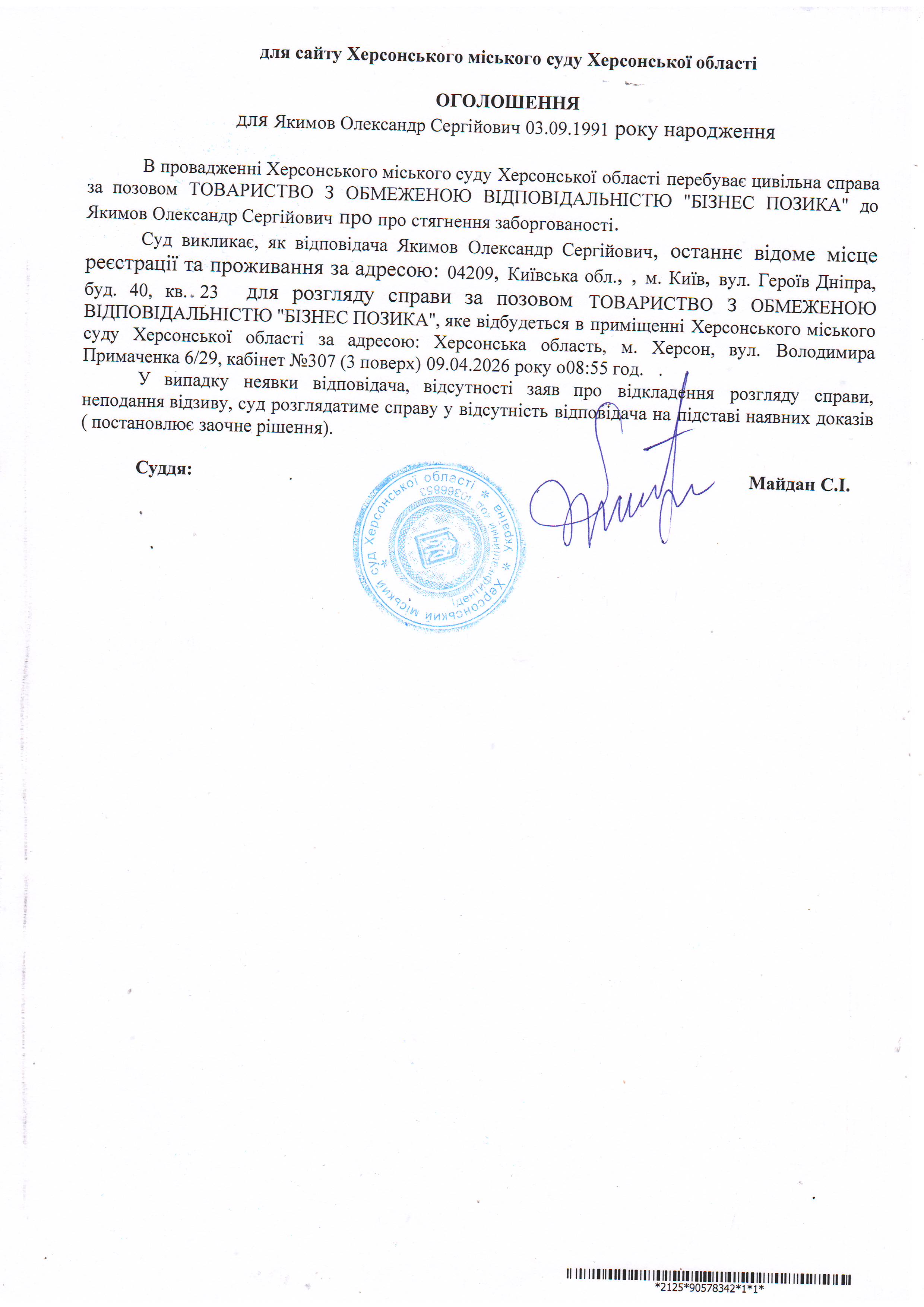 ОГОЛОШЕННЯ ПРО ВИКЛИК ДО СУДУ