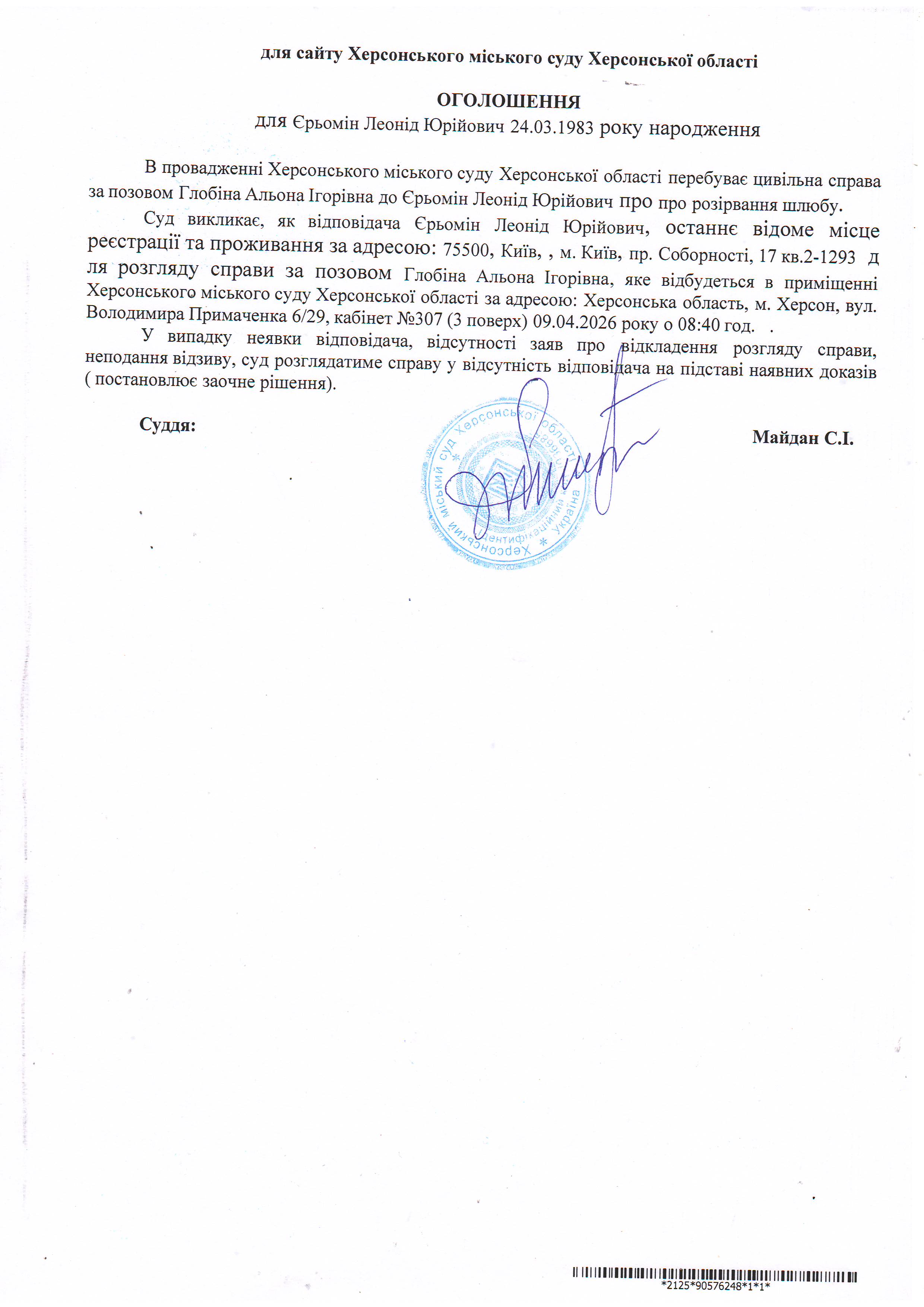 Оголошення для Єрьоміна Леоніда Юрійовича