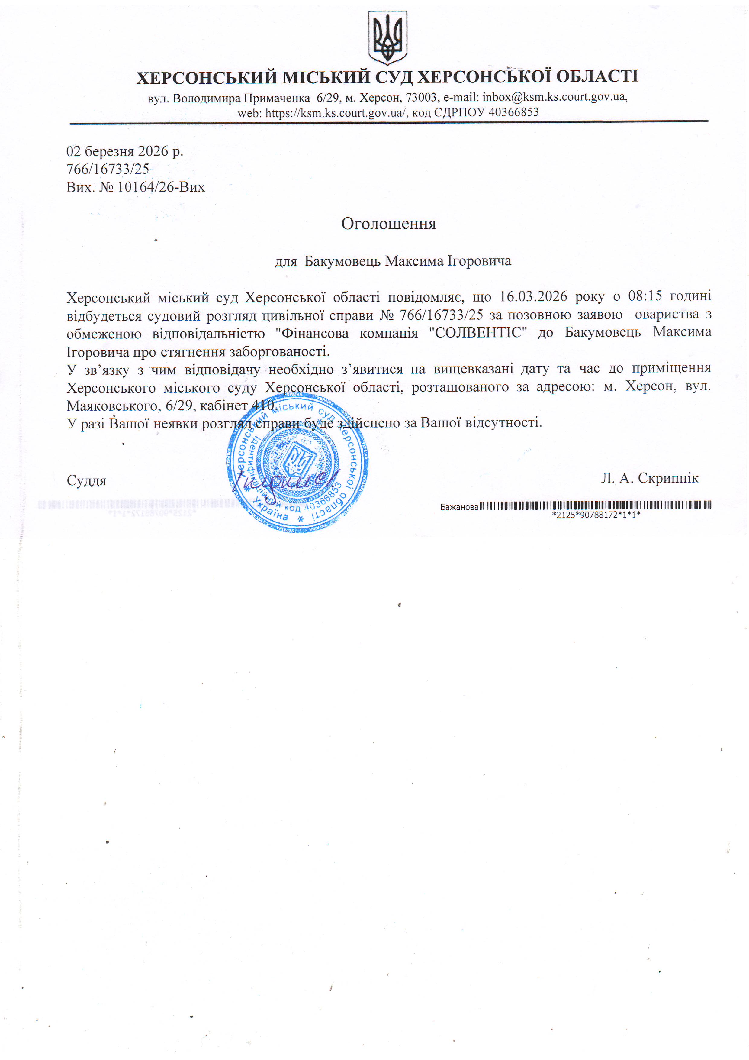ОГОЛОШЕННЯ ПРО ВИКЛИК ДО СУДУ