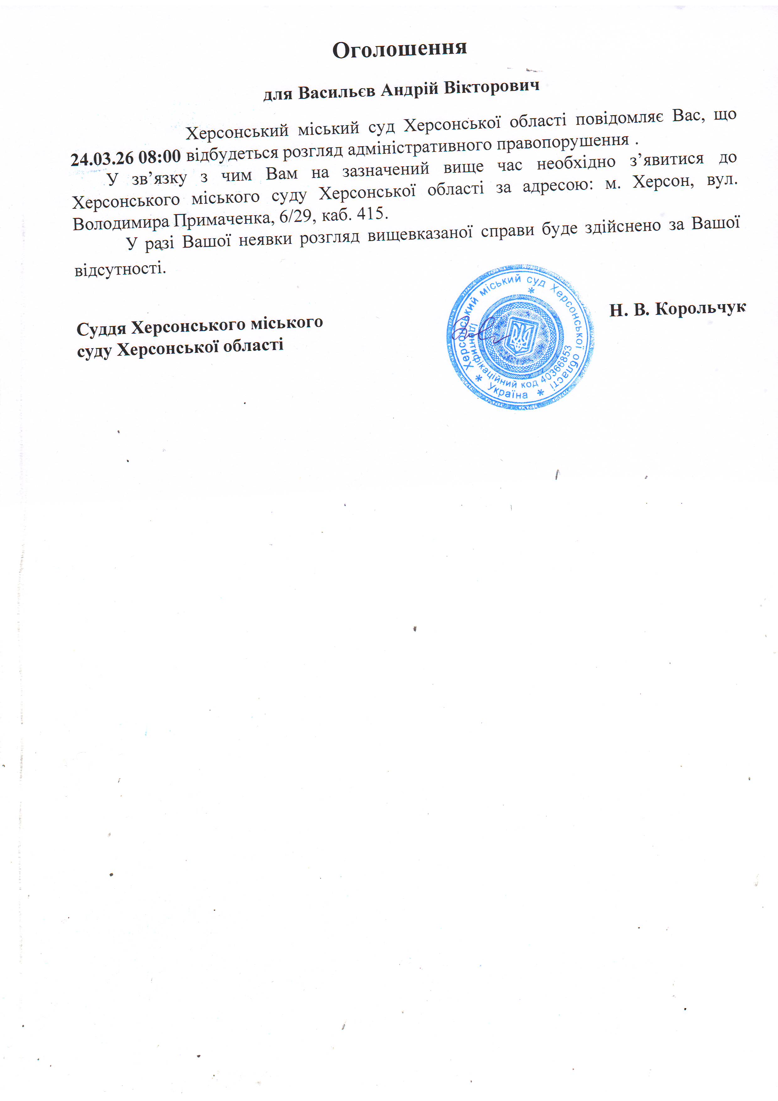 ОГОЛОШЕННЯ ПРО ВИКЛИК ДО СУДУ