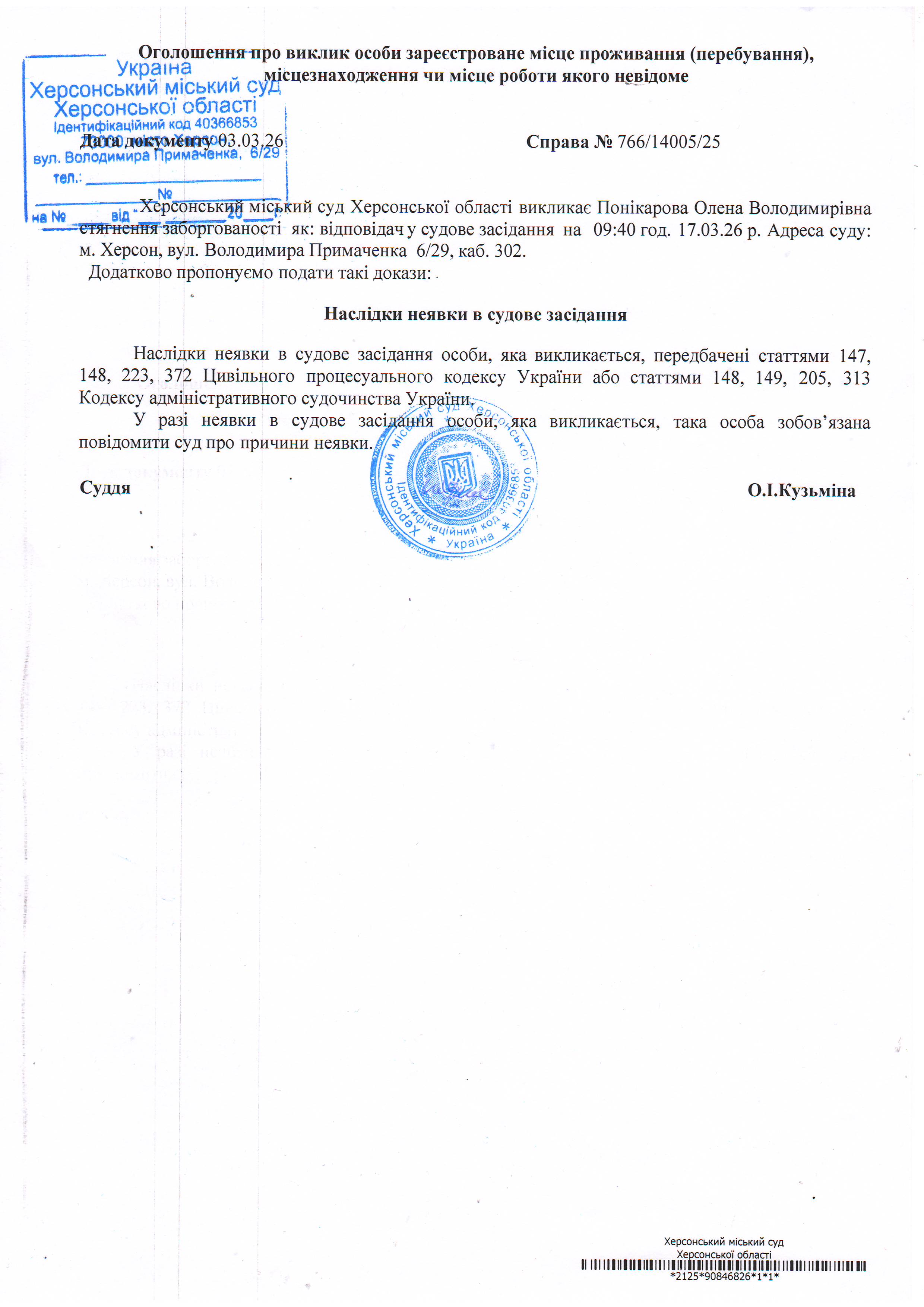 ОГОЛОШЕННЯ ПРО ВИКЛИК ДО СУДУ