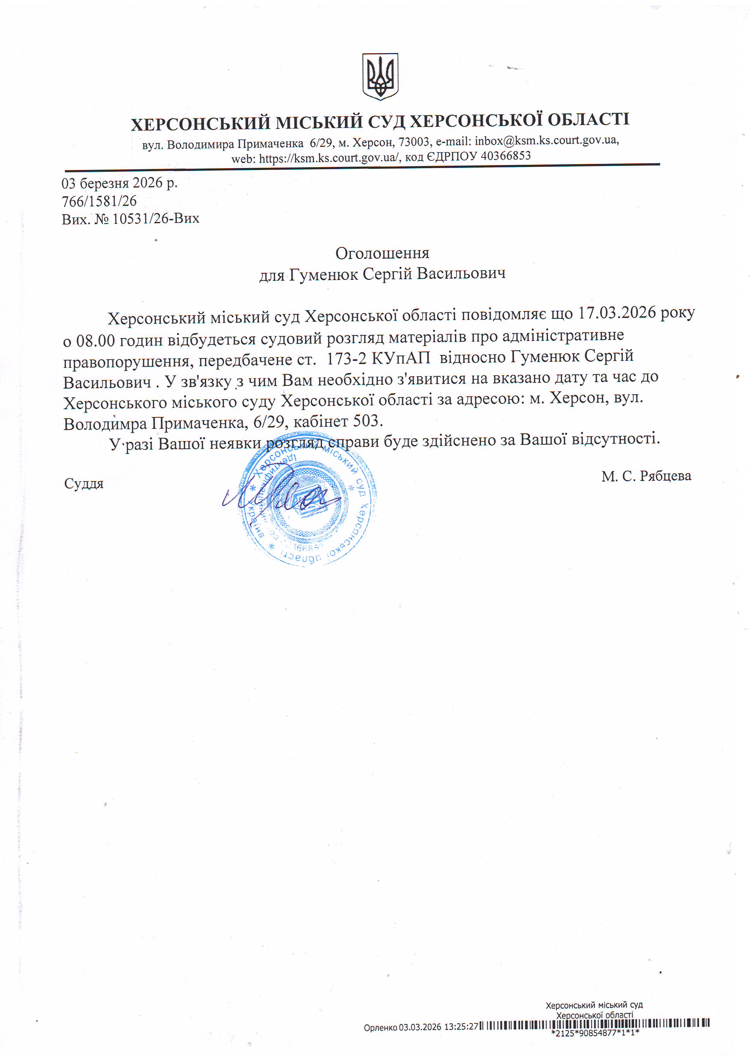 Оголошення про виклик особи в суд та повідомлення про судове рішення