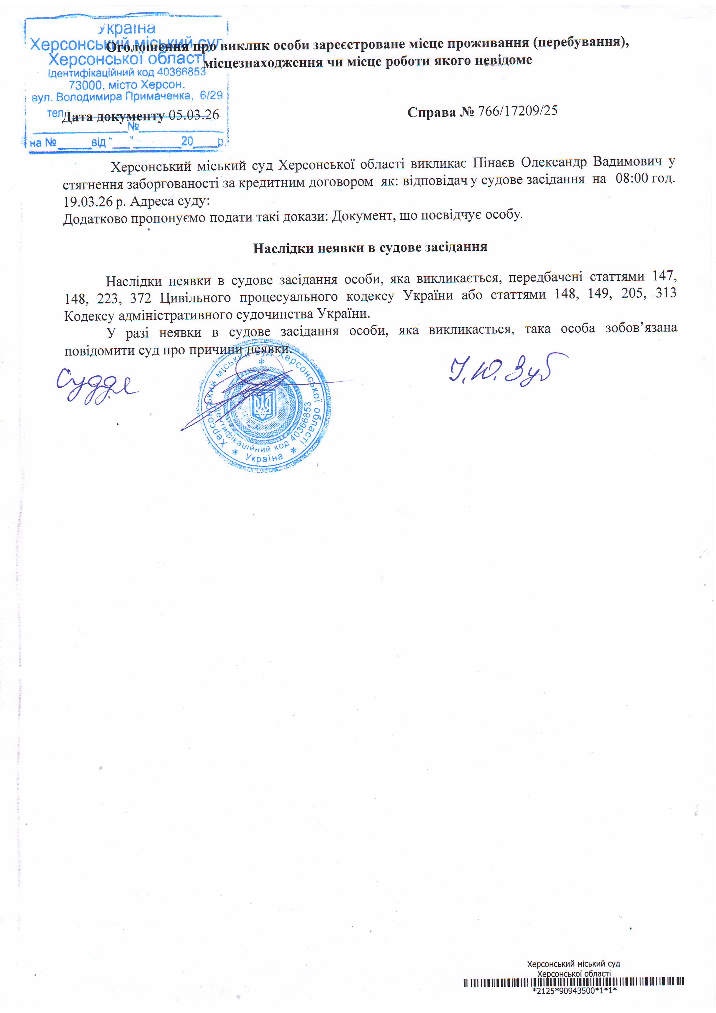 ОГОЛОШЕННЯ ПРО ВИКЛИК ДО СУДУ