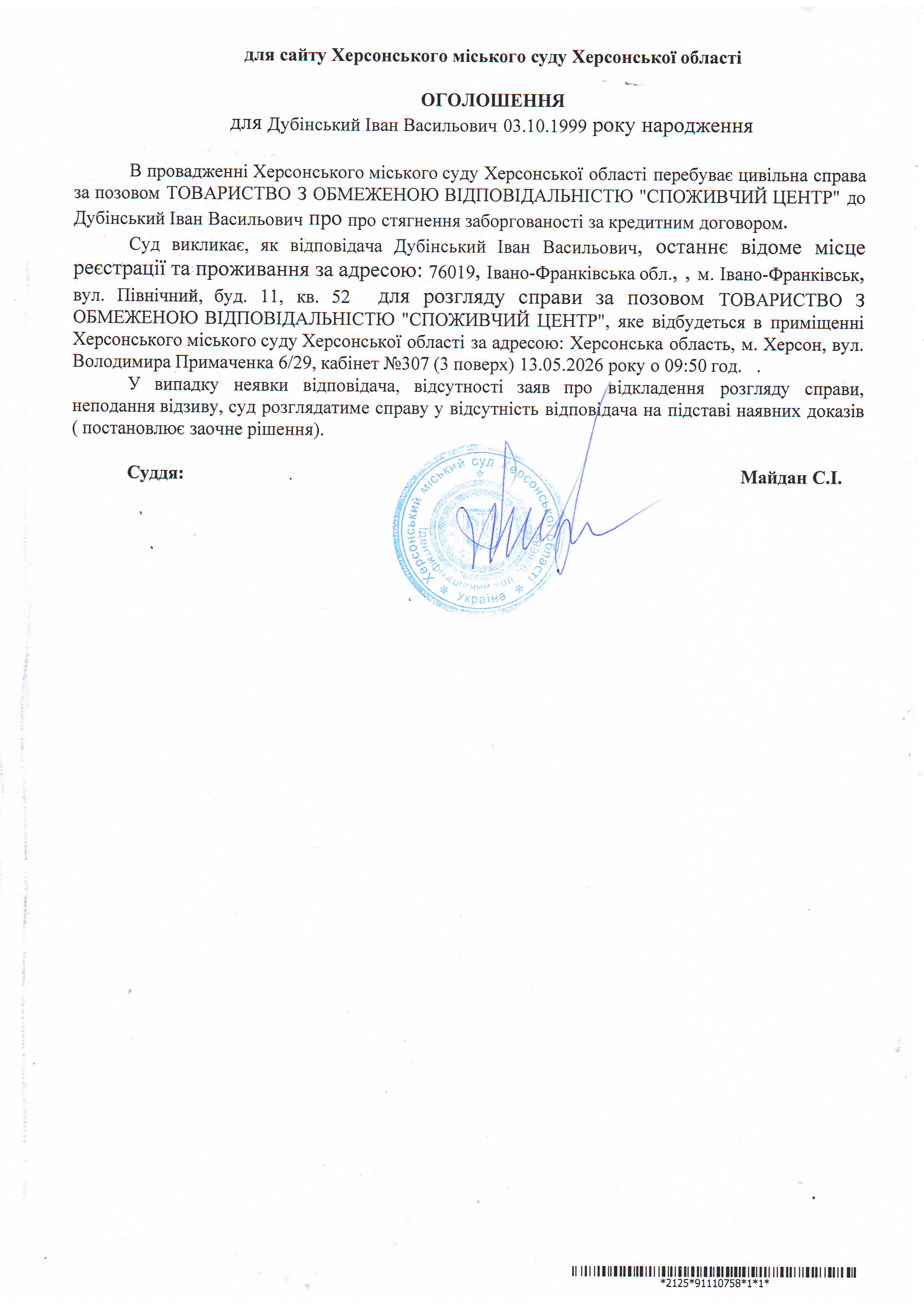 ОГОЛОШЕННЯ ПРО ВИКЛИК ДО СУДУ