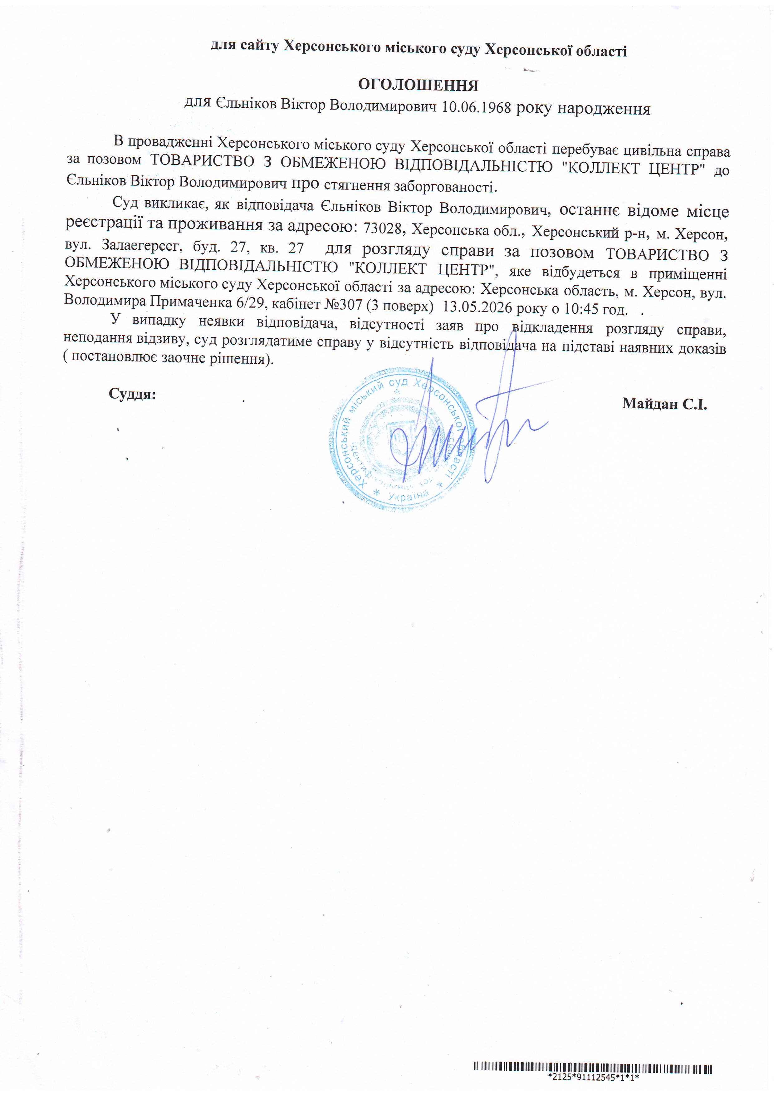 ОГОЛОШЕННЯ ПРО ВИКЛИК ДО СУДУ