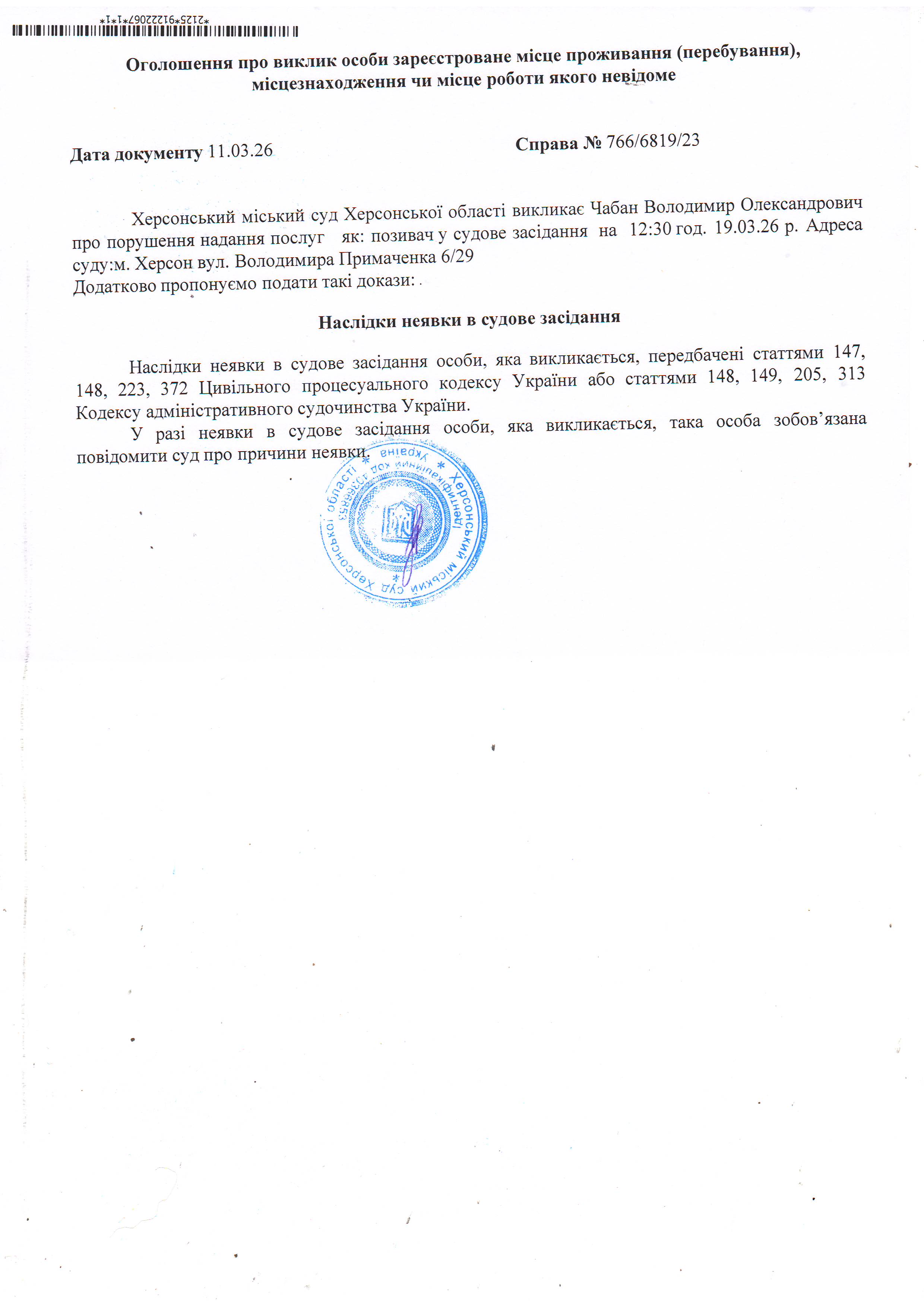ОГОЛОШЕННЯ ПРО ВИКЛИК ДО СУДУ