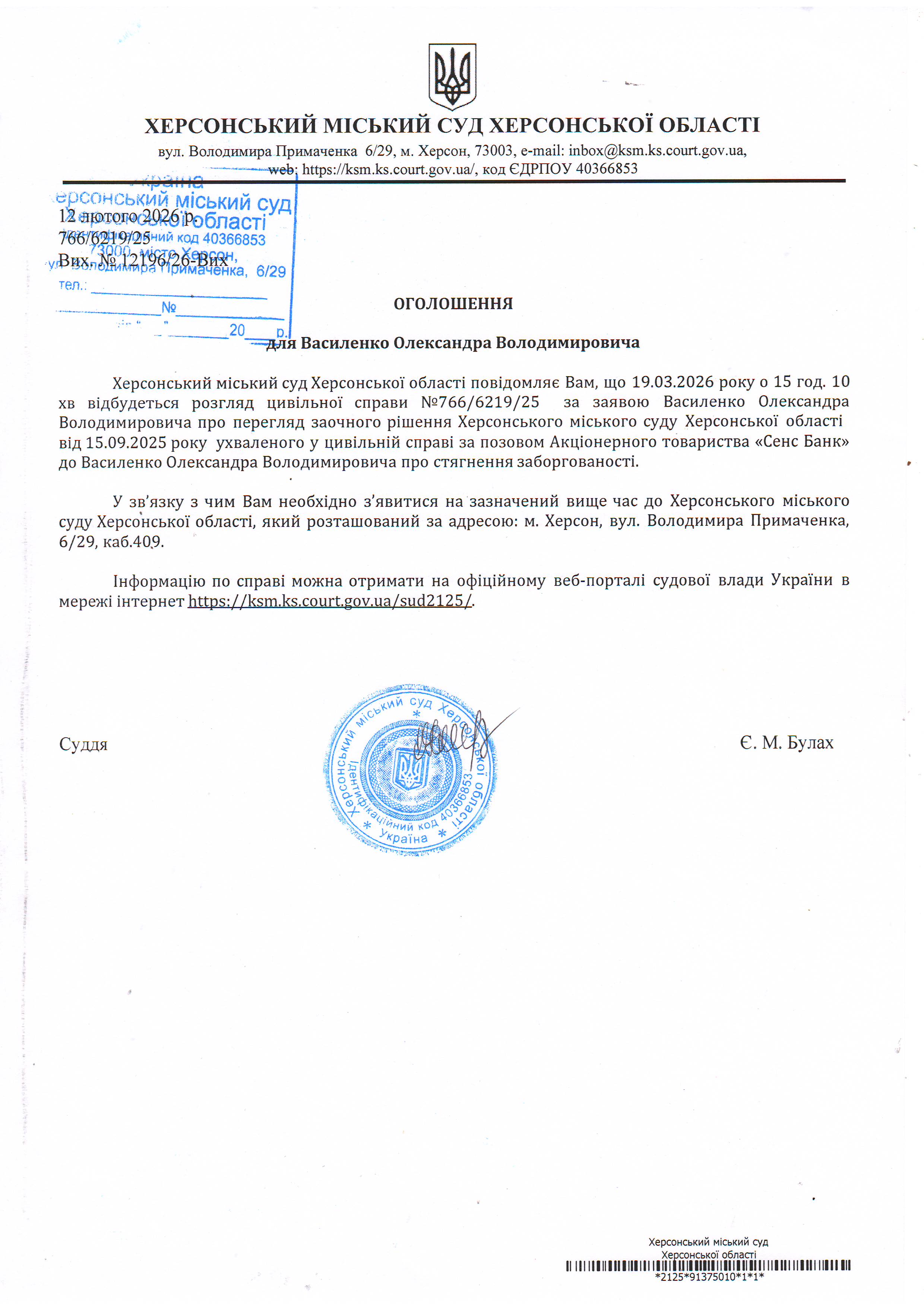 ОГОЛОШЕННЯ ПРО ВИКЛИК ДО СУДУ