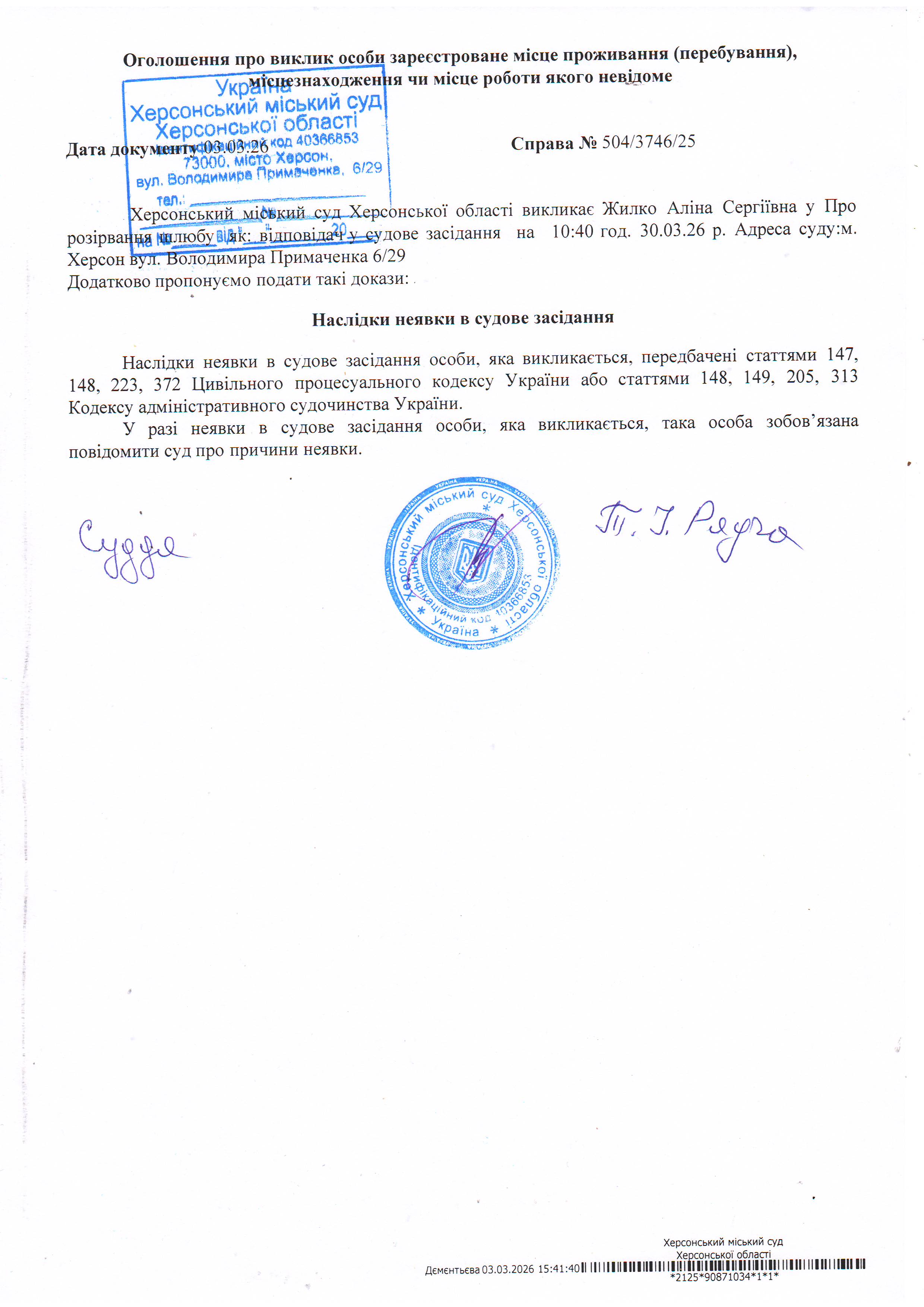 ОГОЛОШЕННЯ ПРО ВИКЛИК ДО СУДУ