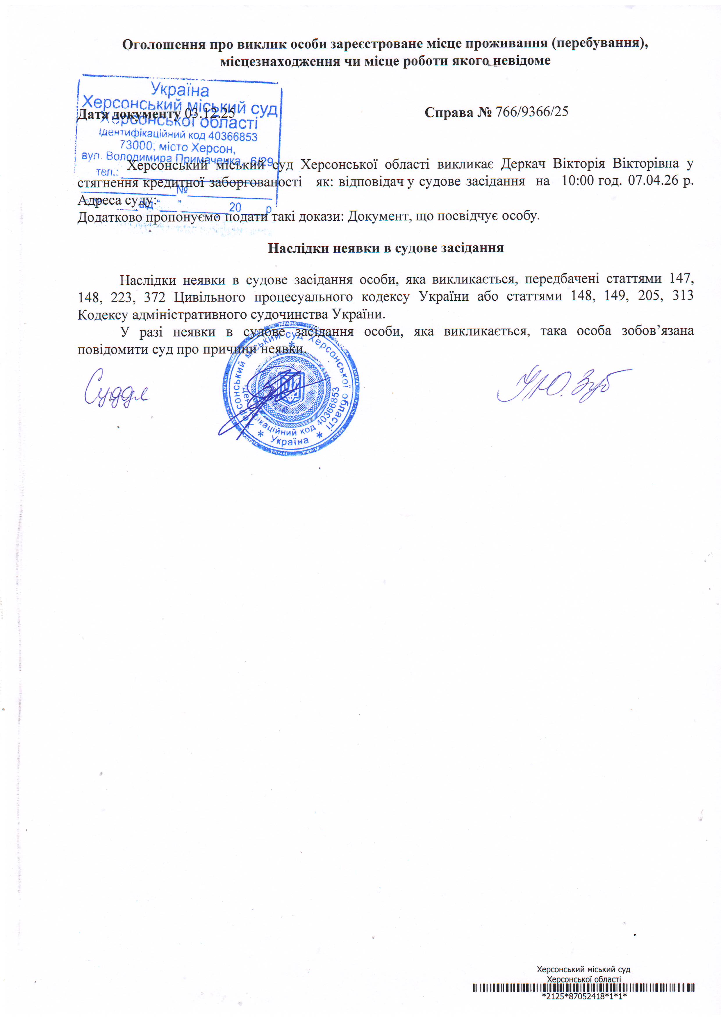 ОГОЛОШЕННЯ ПРО ВИКЛИК ДО СУДУ