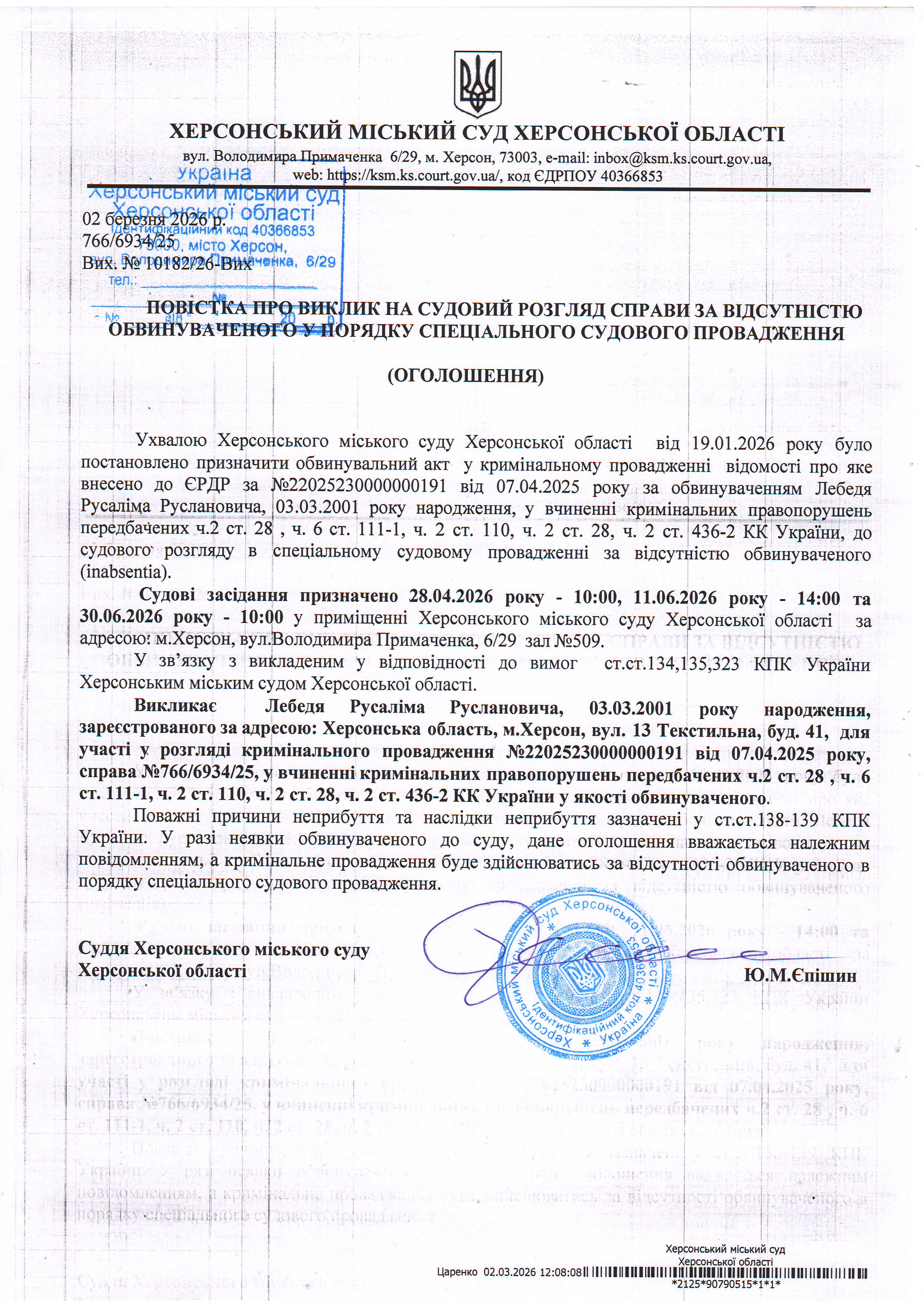 ОГОЛОШЕННЯ ПРО ВИКЛИК ДО СУДУ