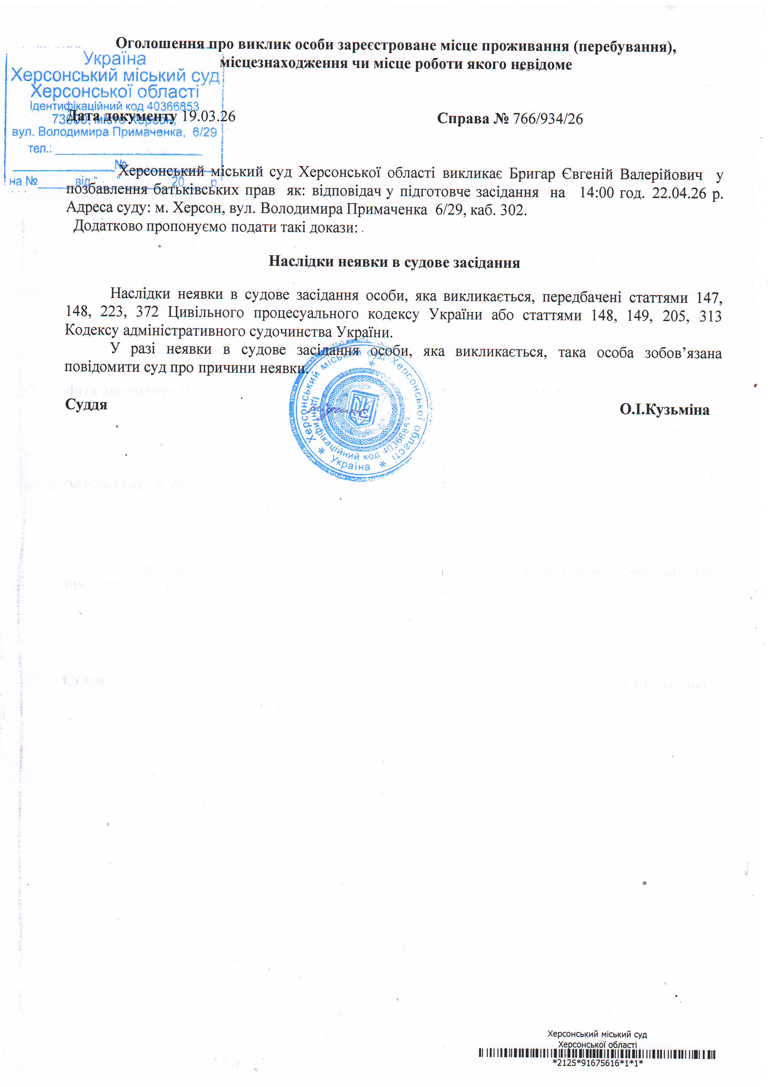 ОГОЛОШЕННЯ ПРО ВИКЛИК ДО СУДУ
