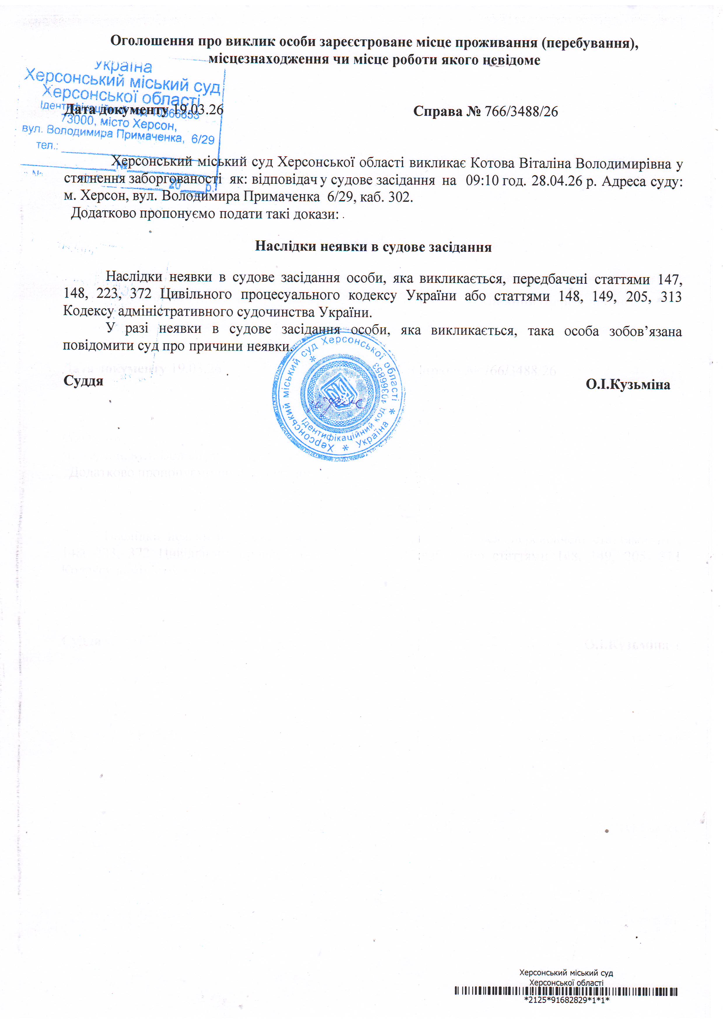 ОГОЛОШЕННЯ ПРО ВИКЛИК ДО СУДУ