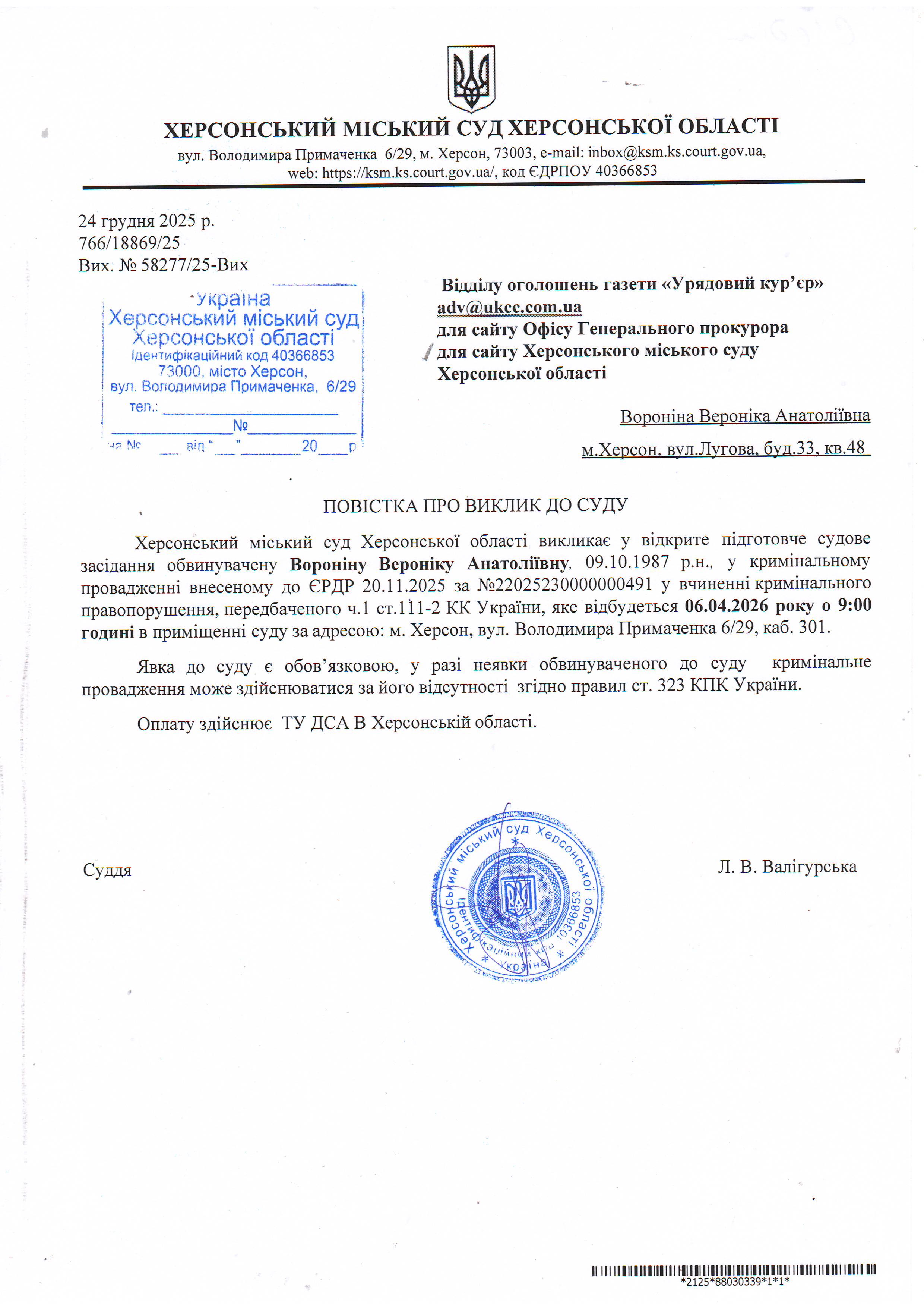 ОГОЛОШЕННЯ ПРО ВИКЛИК ДО СУДУ