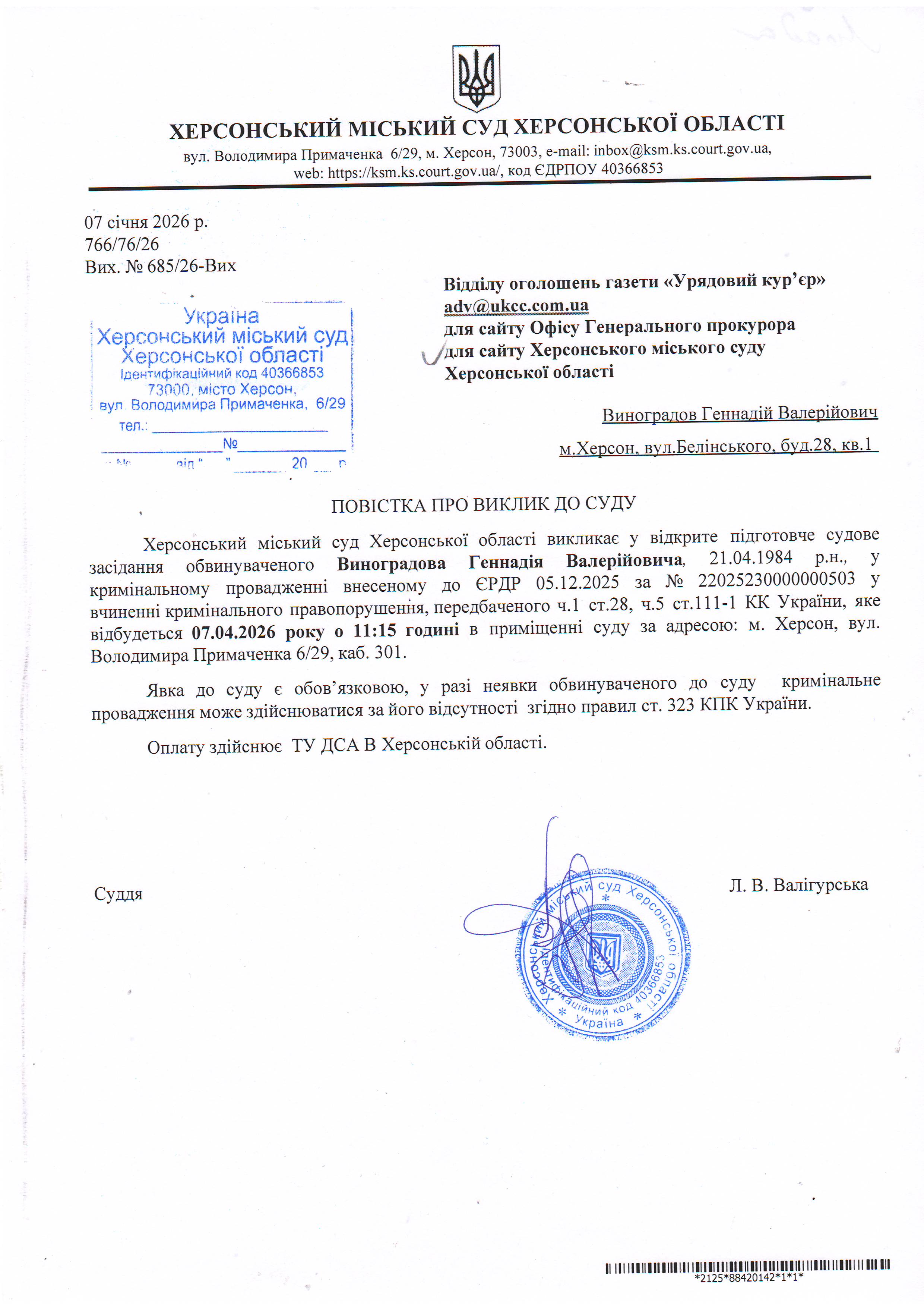 ОГОЛОШЕННЯ ПРО ВИКЛИК ДО СУДУ