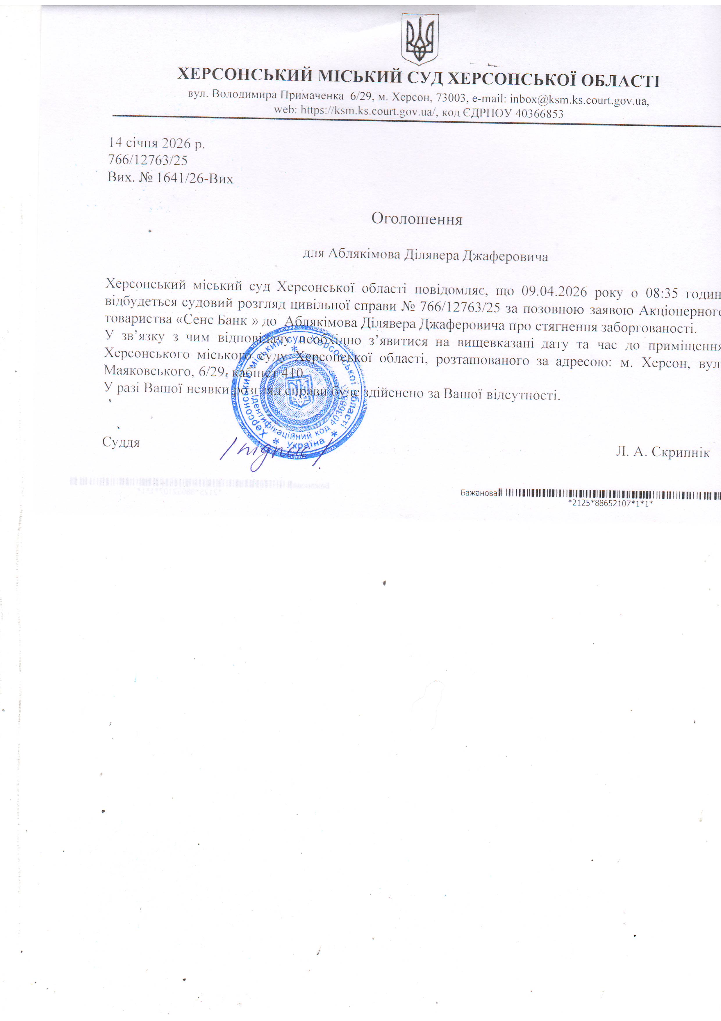 ОГОЛОШЕННЯ ПРО ВИКЛИК ДО СУДУ
