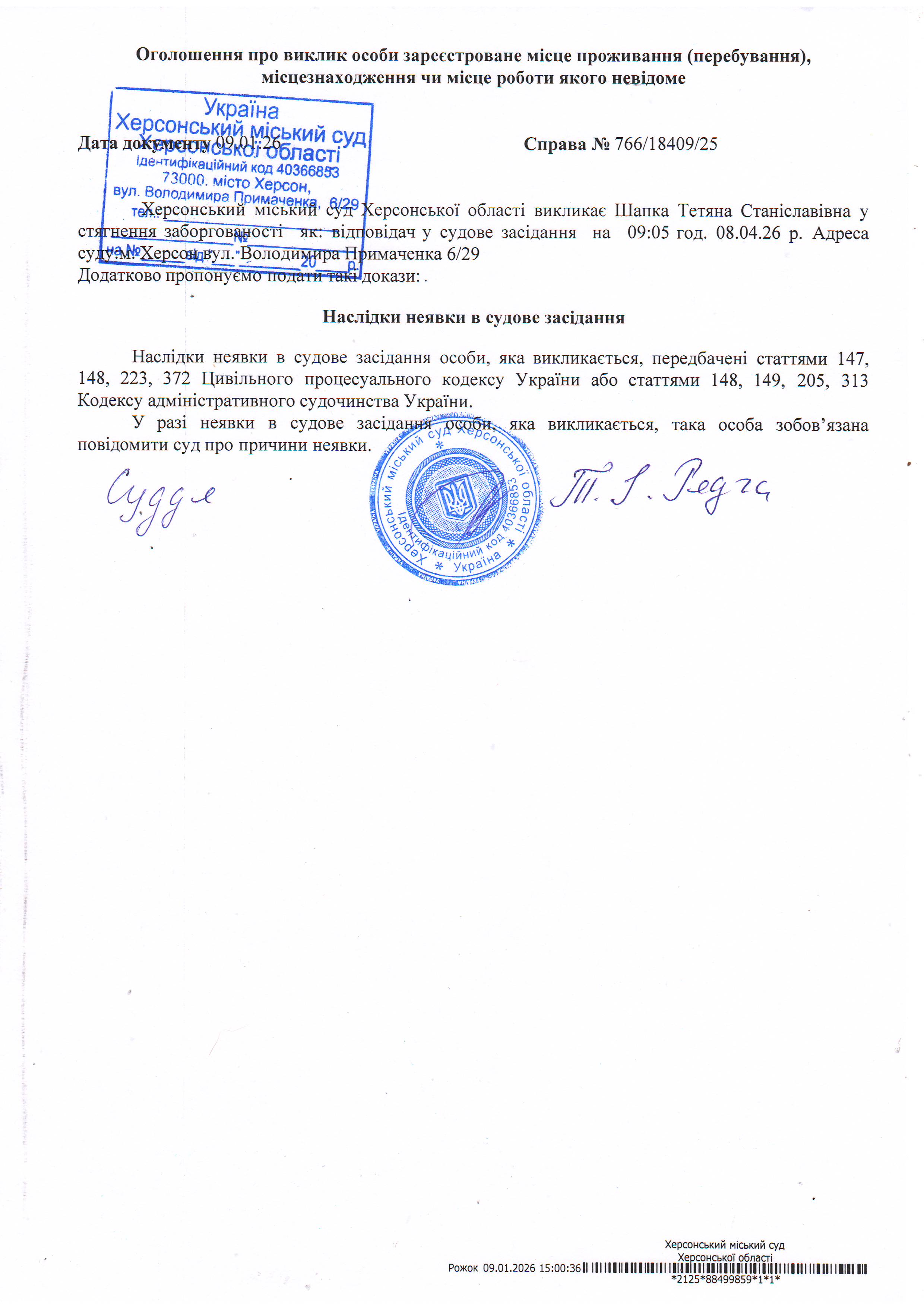 ОГОЛОШЕННЯ ПРО ВИКЛИК ДО СУДУ