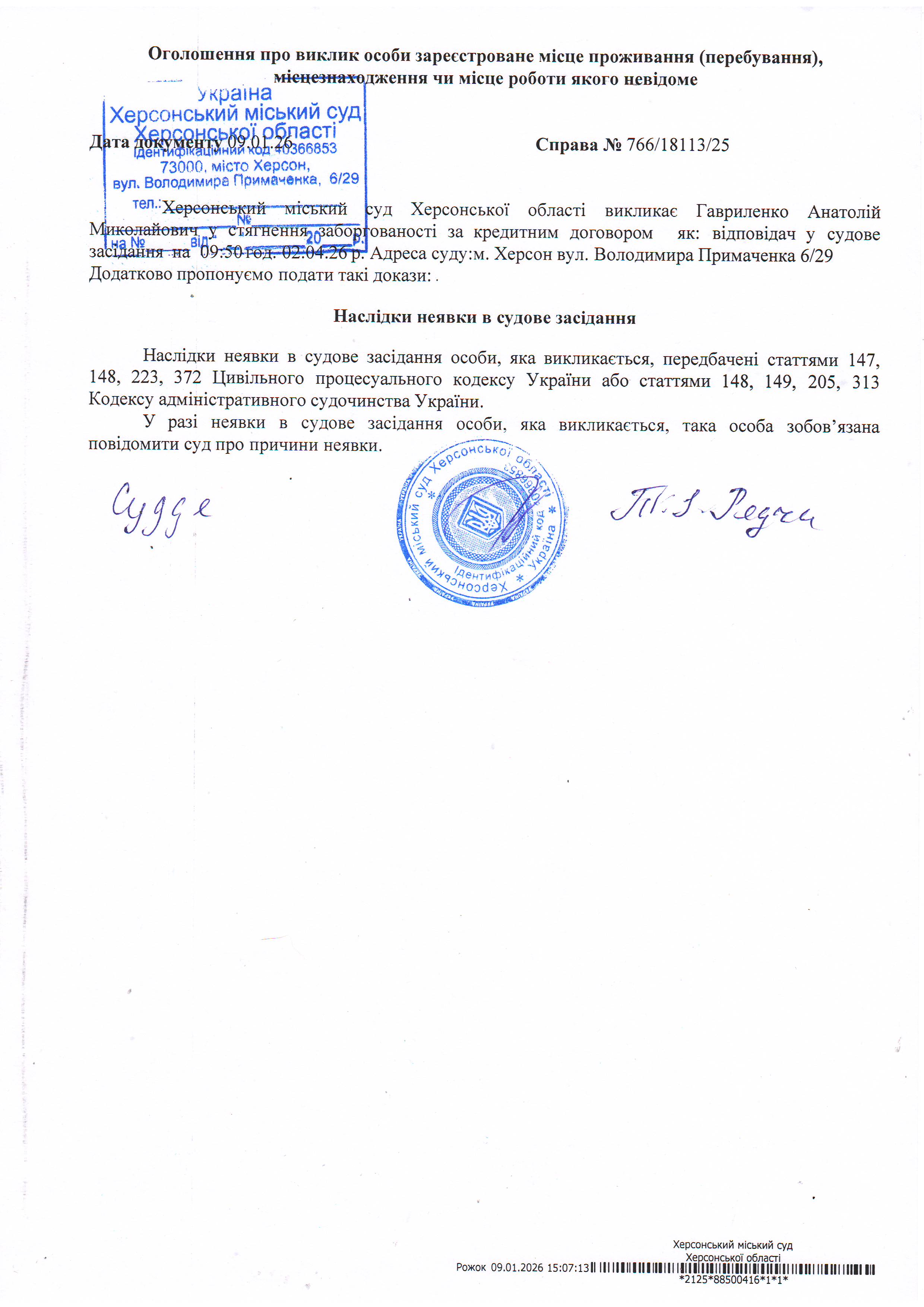 ОГОЛОШЕННЯ ПРО ВИКЛИК ДО СУДУ
