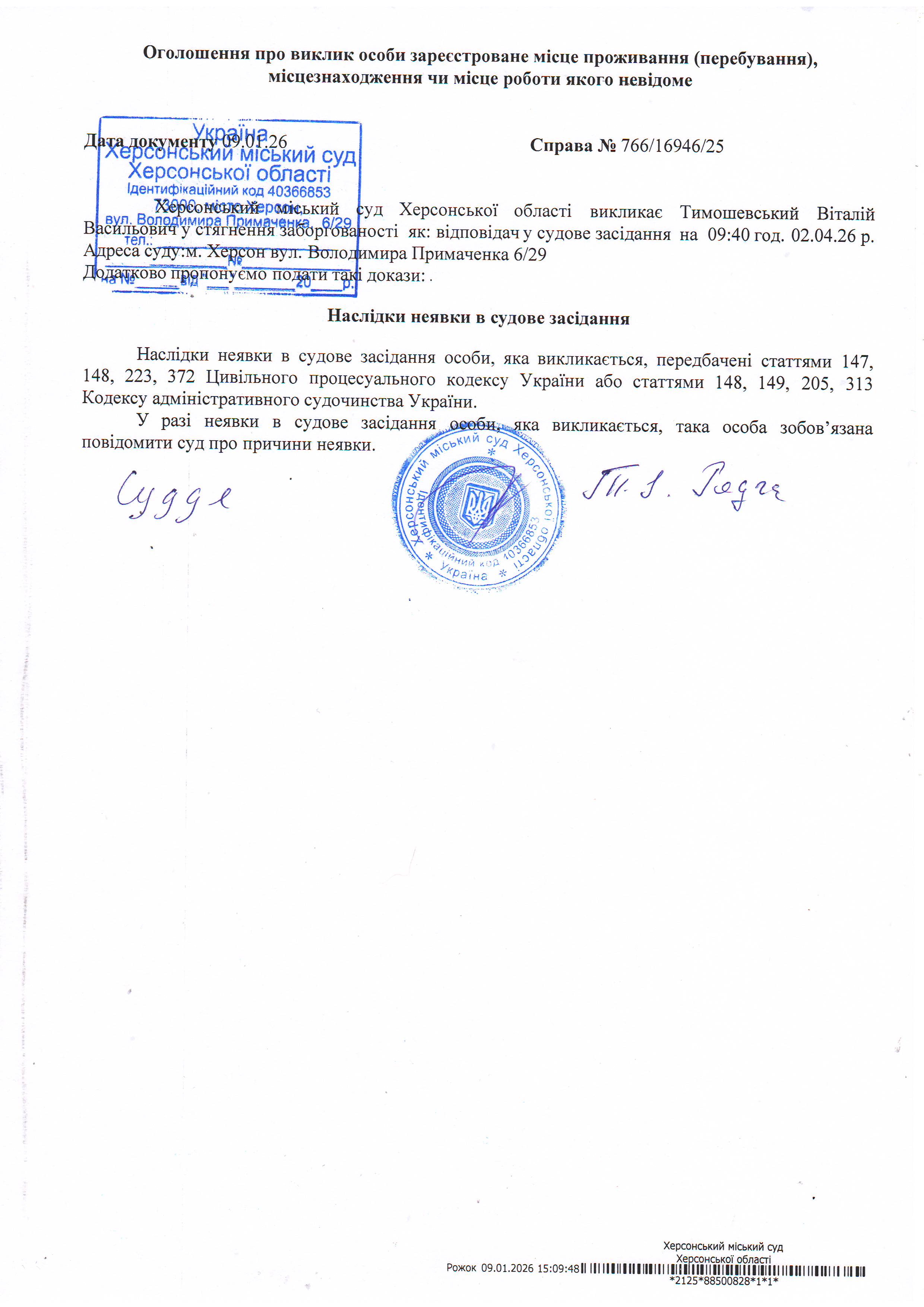 ОГОЛОШЕННЯ ПРО ВИКЛИК ДО СУДУ
