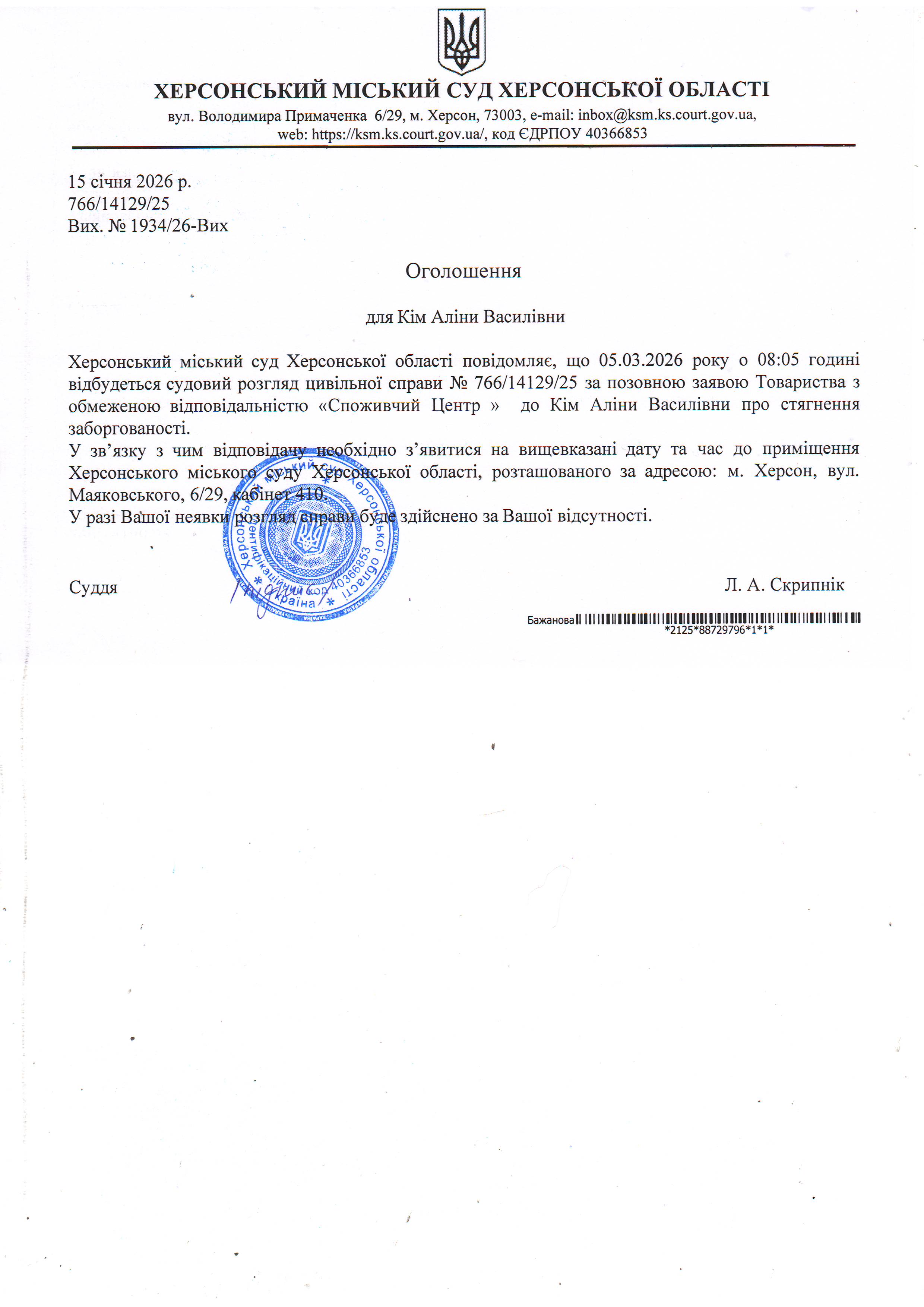 ОГОЛОШЕННЯ ПРО ВИКЛИК ДО СУДУ