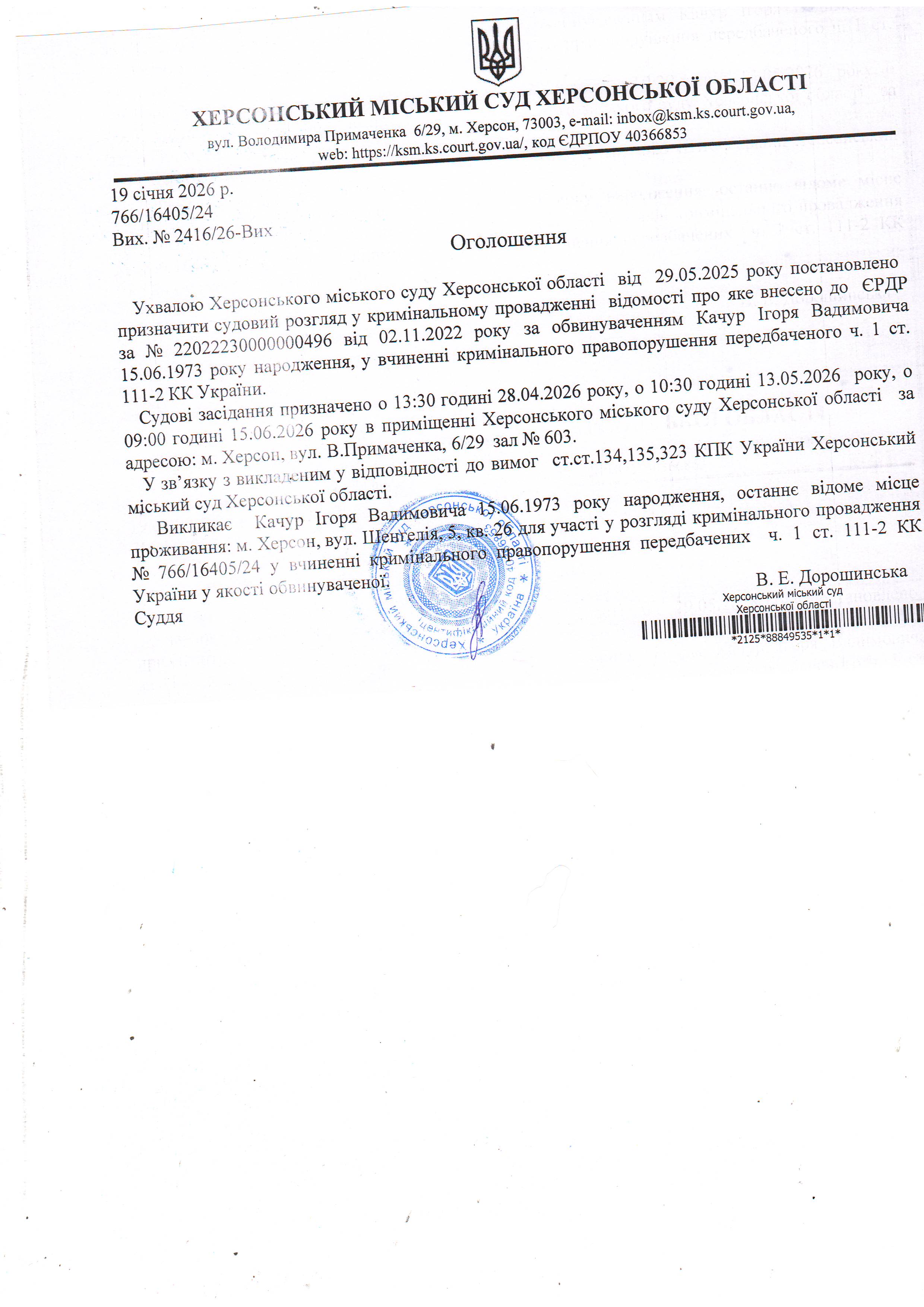 ОГОЛОШЕННЯ ПРО ВИКЛИК ДО СУДУ