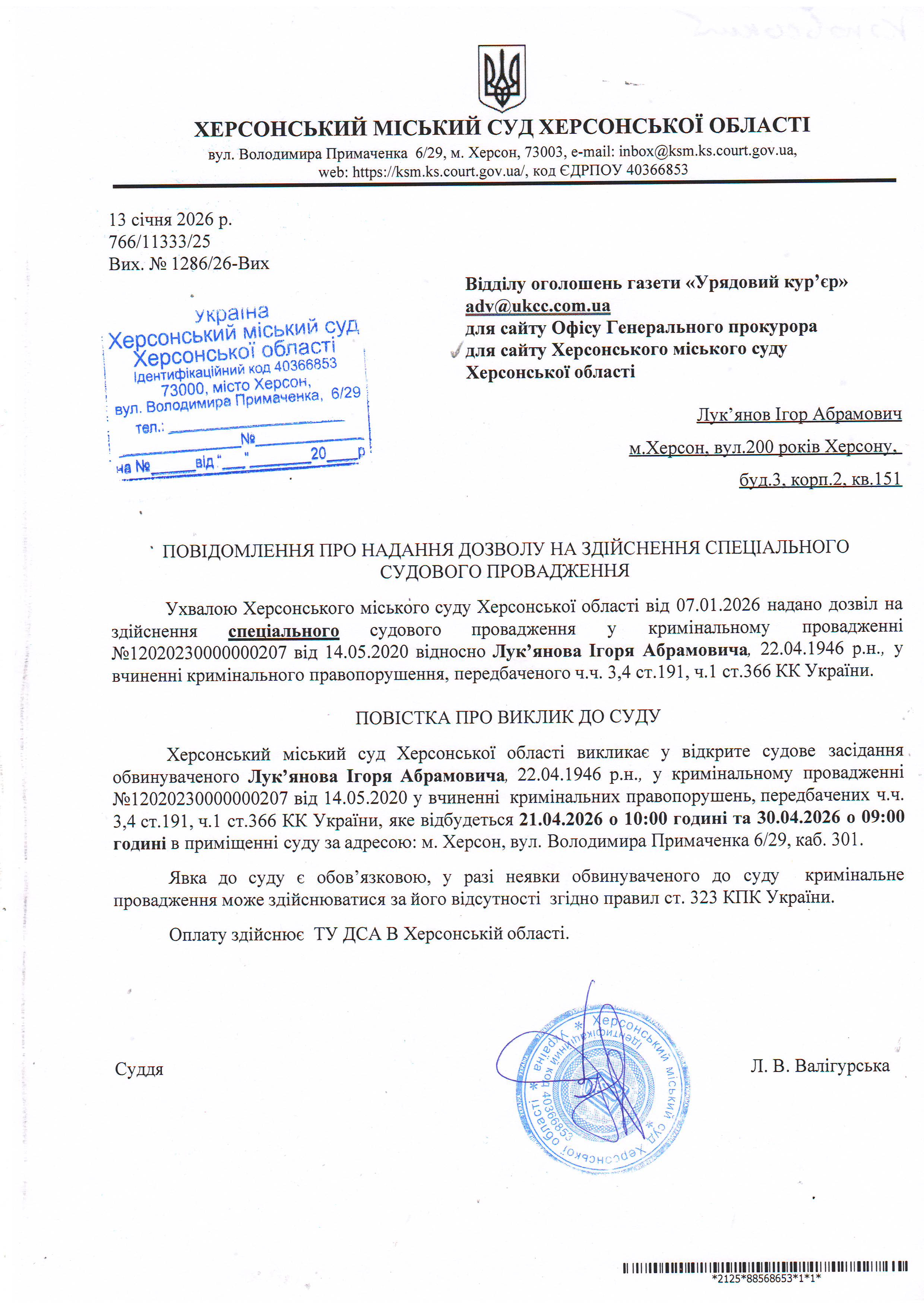 ОГОЛОШЕННЯ ПРО ВИКЛИК ДО СУДУ