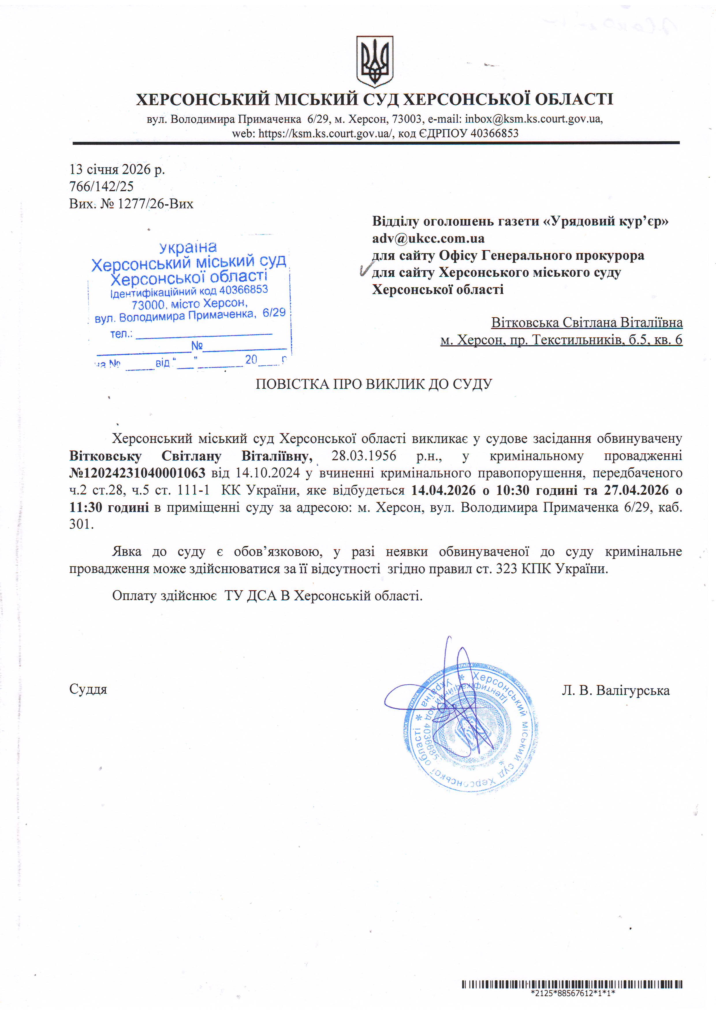 ОГОЛОШЕННЯ ПРО ВИКЛИК ДО СУДУ