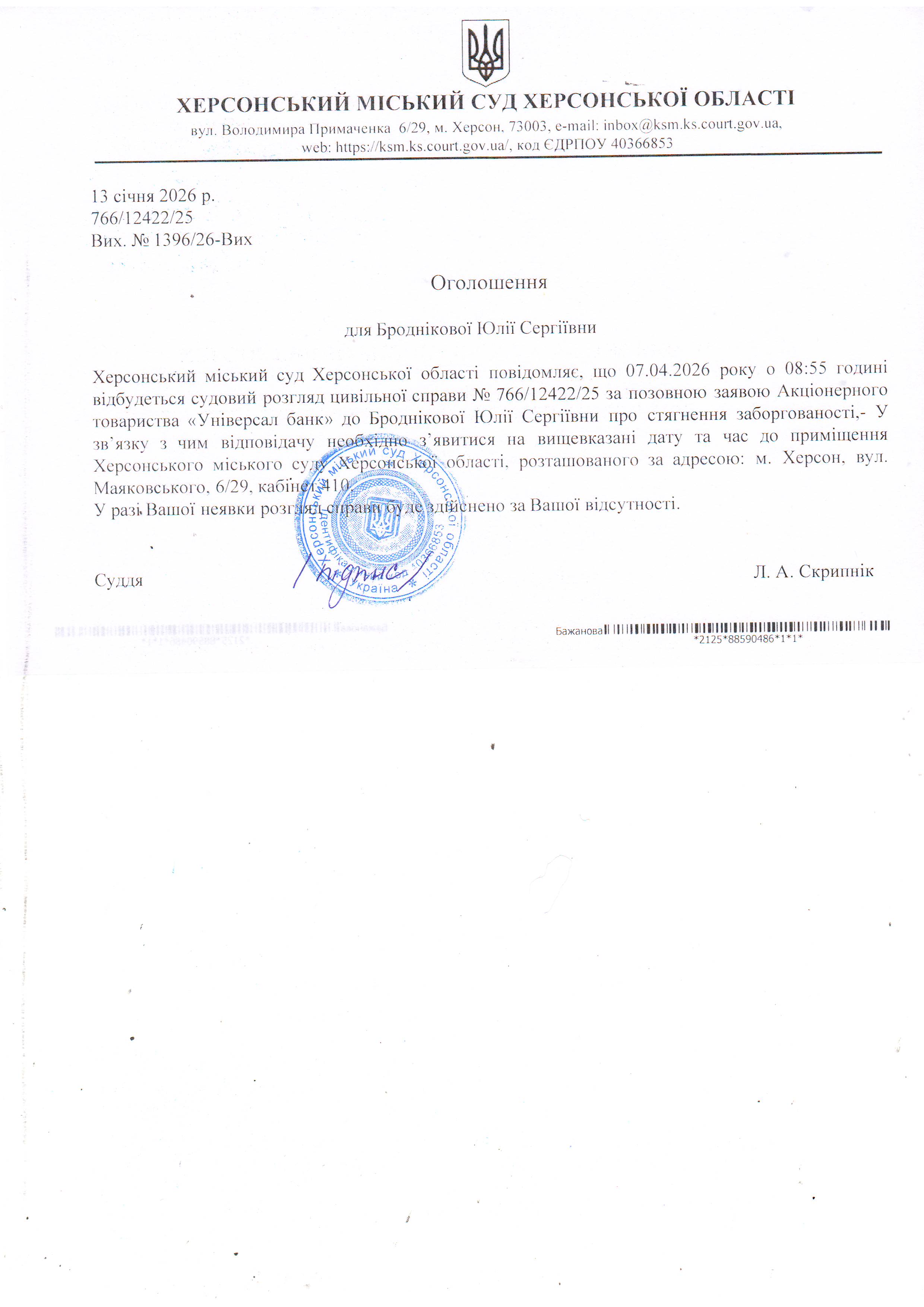 ОГОЛОШЕННЯ ПРО ВИКЛИК ДО СУДУ