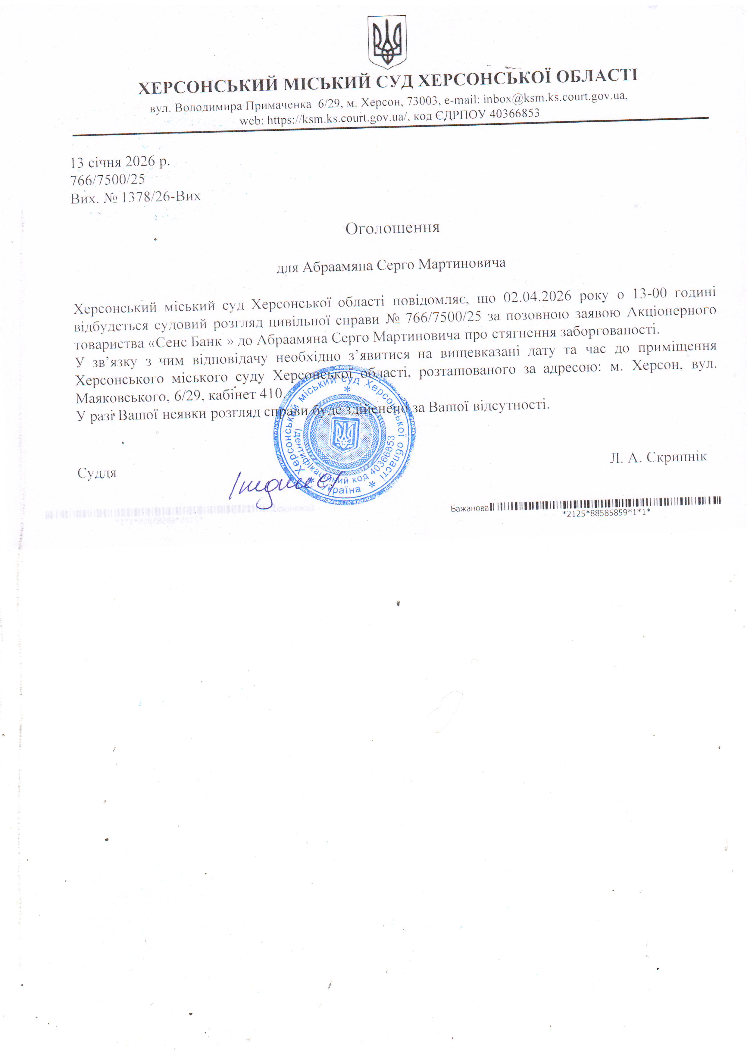 ОГОЛОШЕННЯ ПРО ВИКЛИК ДО СУДУ