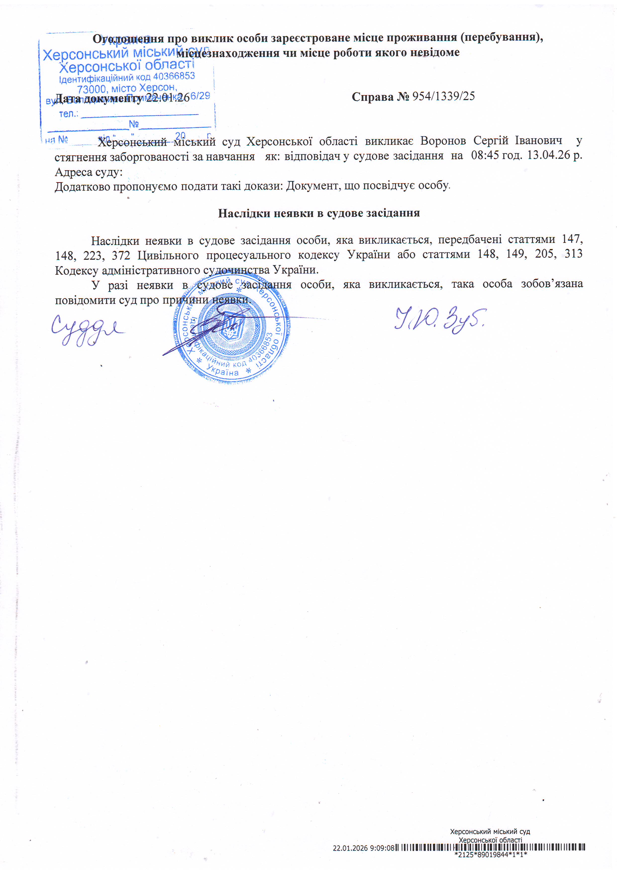 ОГОЛОШЕННЯ ПРО ВИКЛИК ДО СУДУ