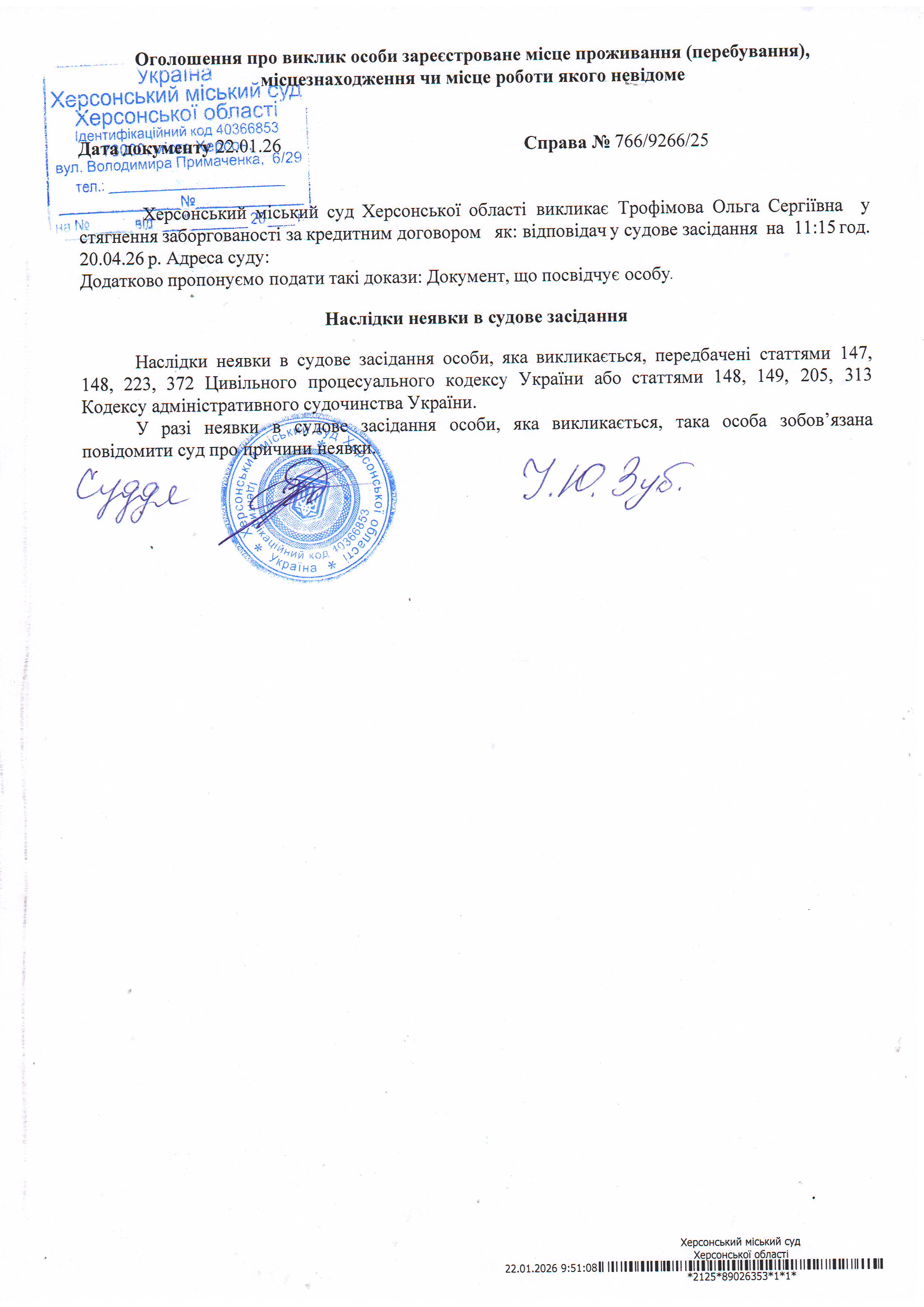 ОГОЛОШЕННЯ ПРО ВИКЛИК ДО СУДУ
