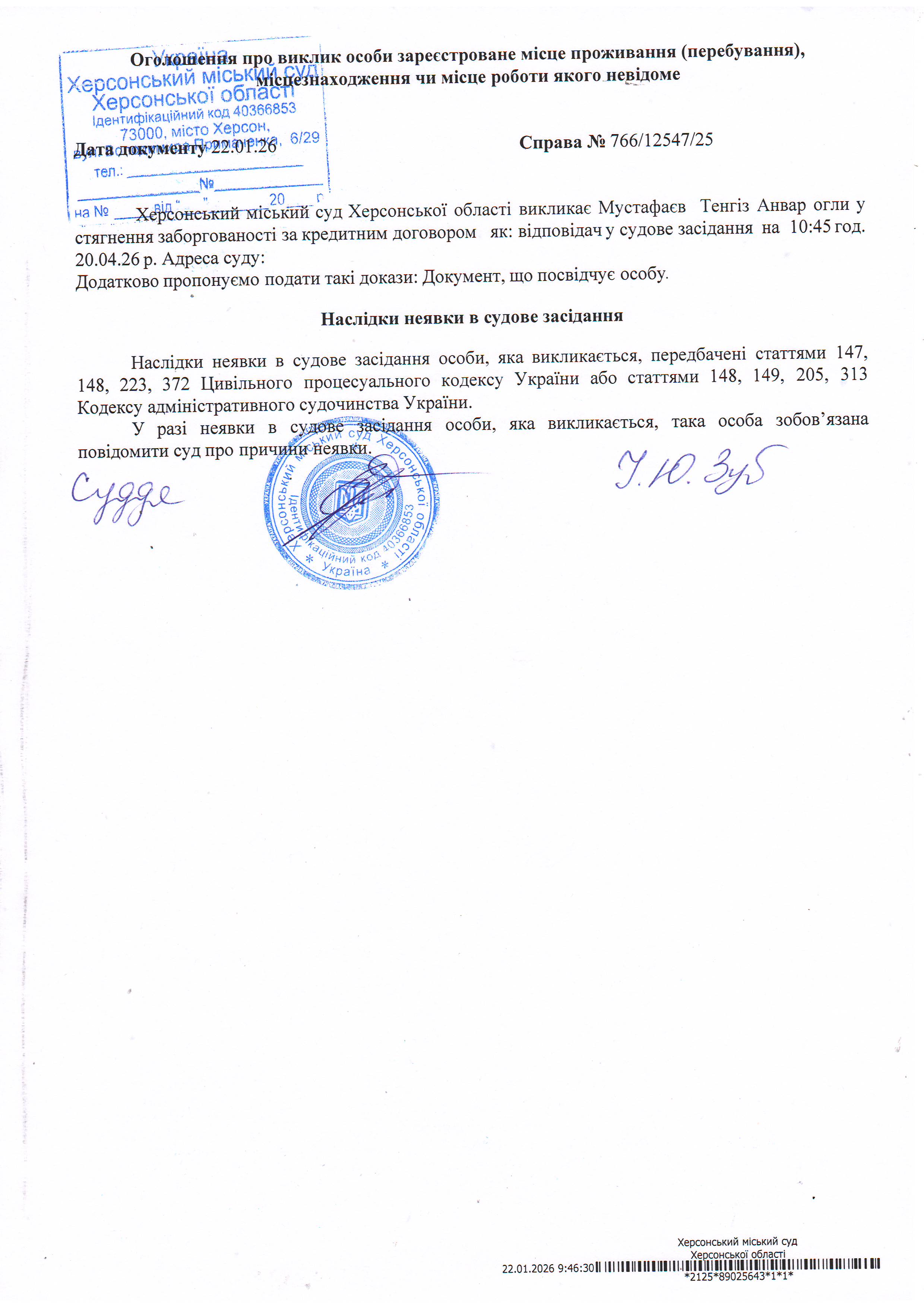 Оголошення для Мустафаєва Тенгіза Анвар огли