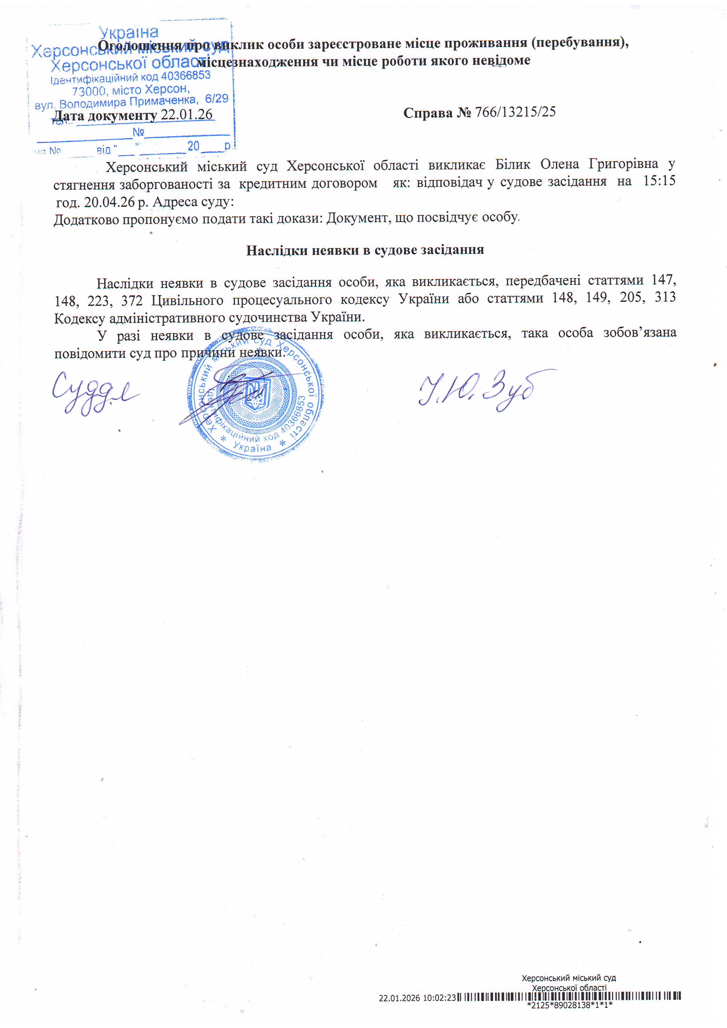 ОГОЛОШЕННЯ ПРО ВИКЛИК ДО СУДУ